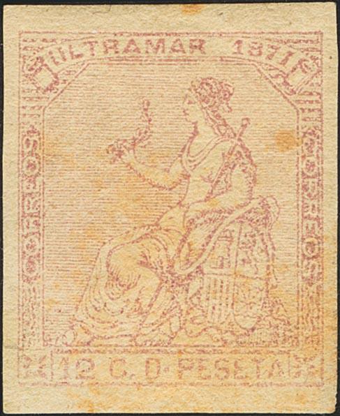 ★ 25s. 1871. 12 cts lila (conservación habitual). SIN DENTAR. MAGNIFICO. Edifil 2022: 100 Euros