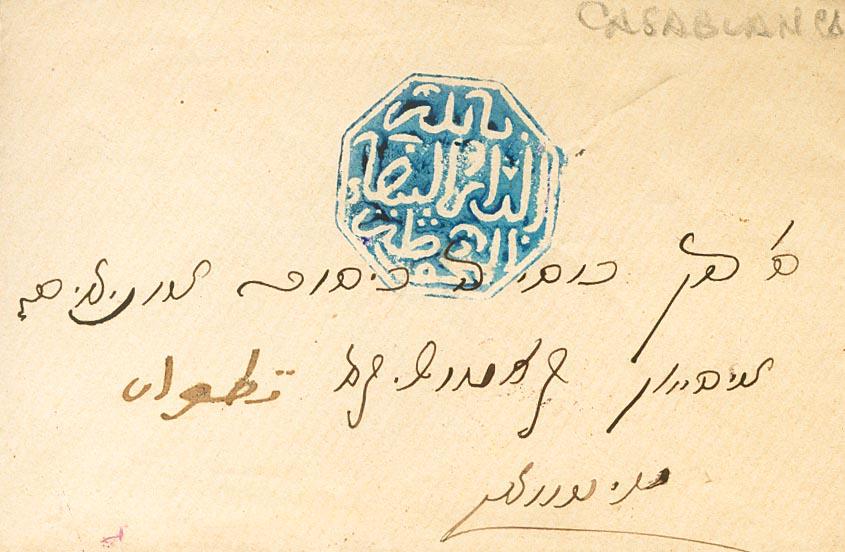 (1892ca). Carta con marca hexagonal del Maghzen, en azul de Casablanca. MAGNIFICA Y RARA.