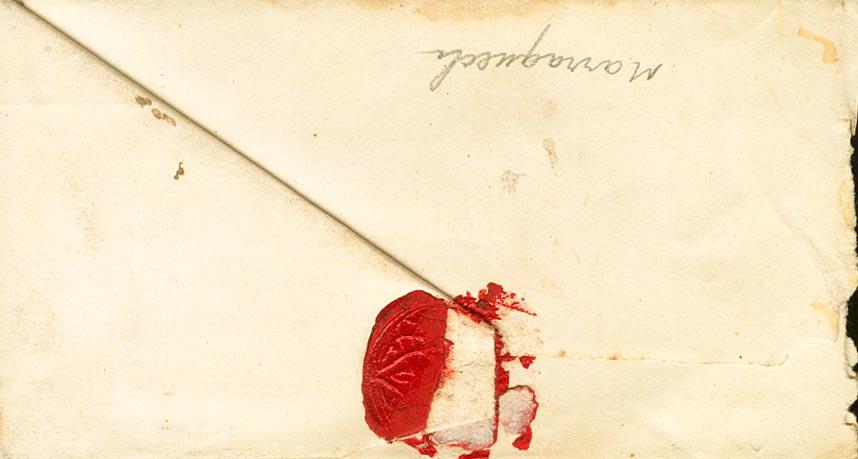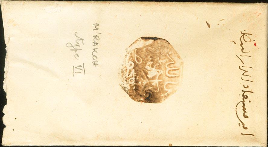 (1892ca). Carta con marca hexagonal del Maghzen, en sepia (diluido) de Marrakech. BONITA Y RARA.