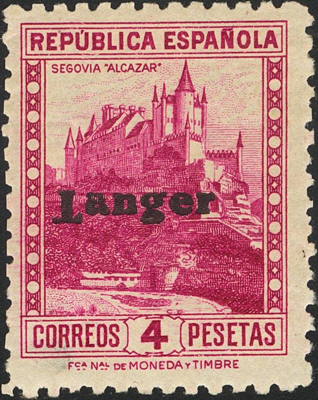 ★ 126hea. 1939. 4 pts lila carmín (conservación habitual). "T" DE TANGER INVERTIDA. MAGNIFICO. Edifil 2018: 150 Euros