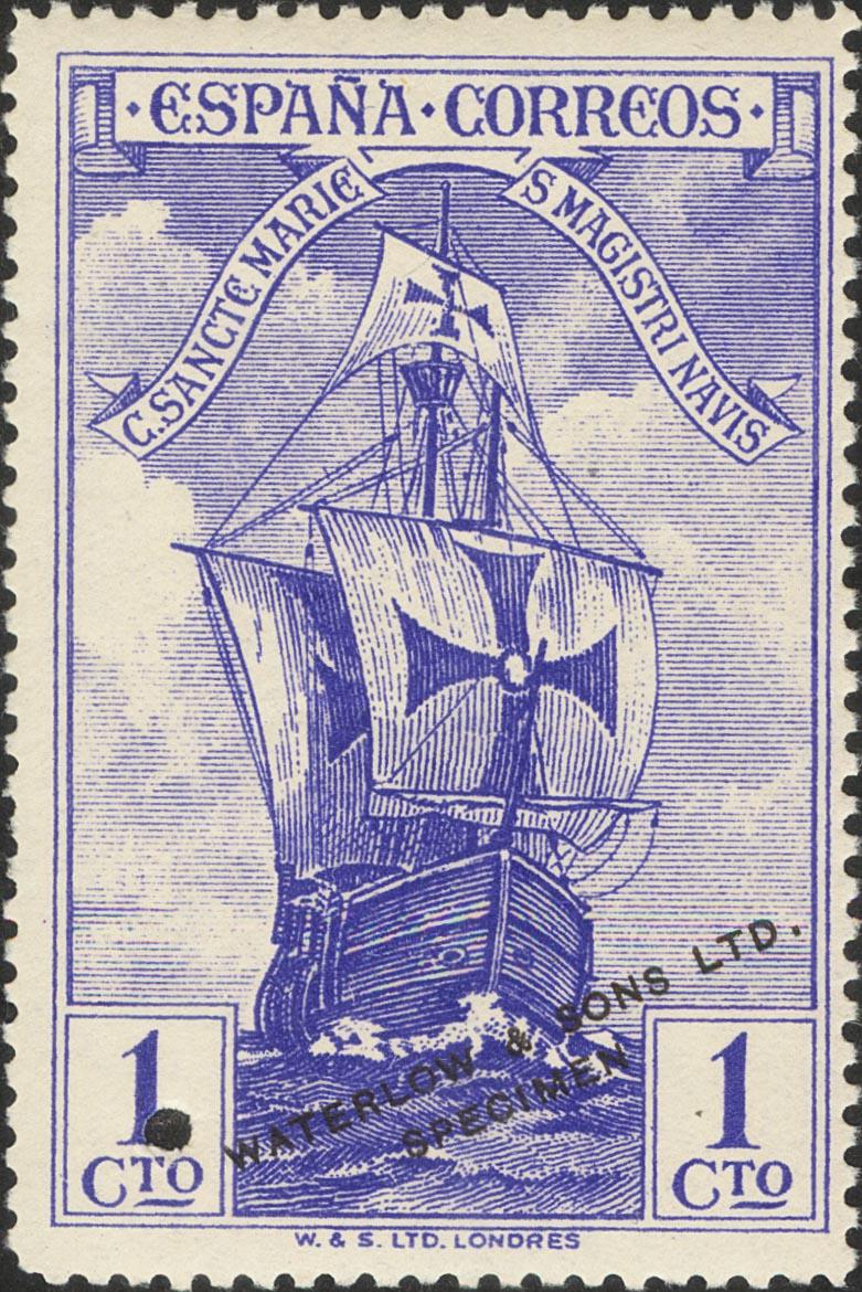 ★★ 531P. 1930. 1 cts violeta. CAMBIO DE COLOR, sobrecarga WATERLOW AND SONS LTD / SPECIMEN y taladro pequeño. MAGNIFICO. (Gálvez 2736)
