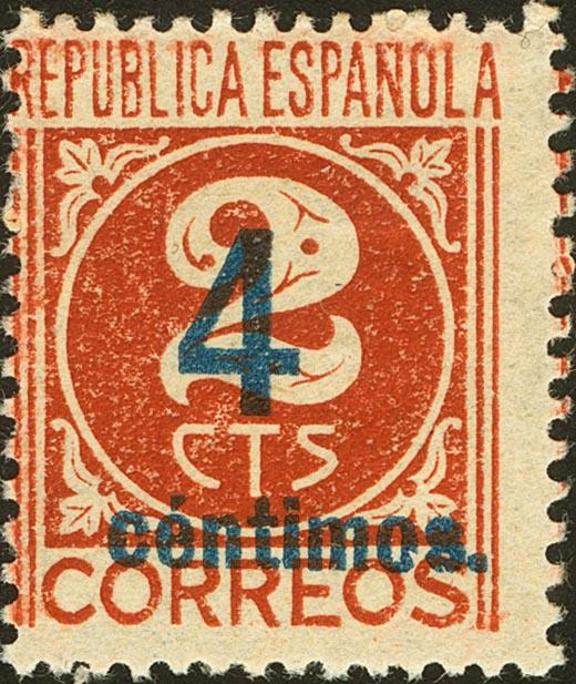 ★ 744td. 1938. 45 cts sobre 2 cts castaño. Variedad SOBRECARGA SIN "5" DE "45". MAGNIFICO Y RARO.