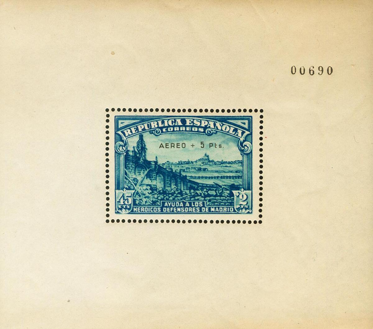 ★★ 760. 1938. Hoja bloque. AEREO+5 PTS. MAGNIFICA Y RARA, ESPECIALMENTE EN ESTA EXCEPCIONAL CONSERVACION. Cert. COMEX. Edifil 2022: 6.500 Euros