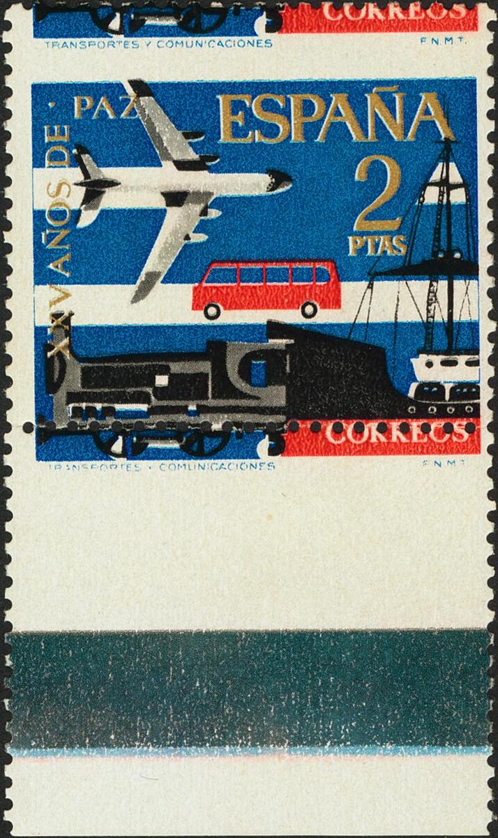 ★★ 1584dh. 1964. 2 pts multicolor, borde de hoja inferior. Variedad DENTADO HORIZONTAL DESPLAZADO. MAGNIFICO Y MUY RARO Y ESPECTACULAR.
