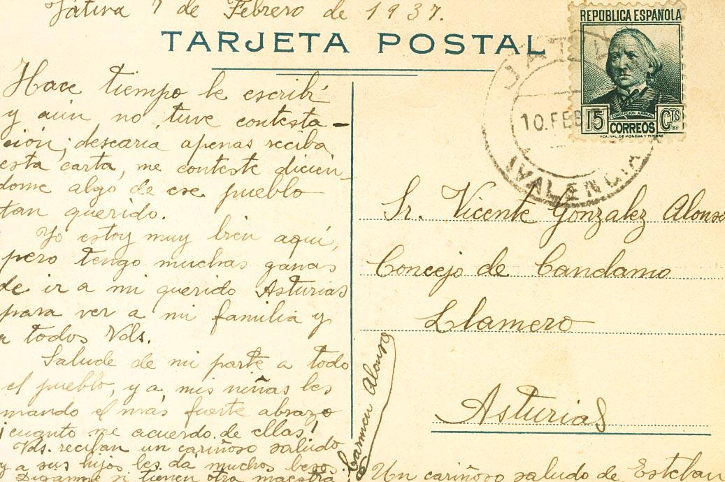 1937. Tarjeta Postal LOS NACIONALES, del Ministerio de Propaganda. JATIVA a LLAMERO (ASTURIAS). MAGNIFICA Y RARA. (Allepuz 1230)