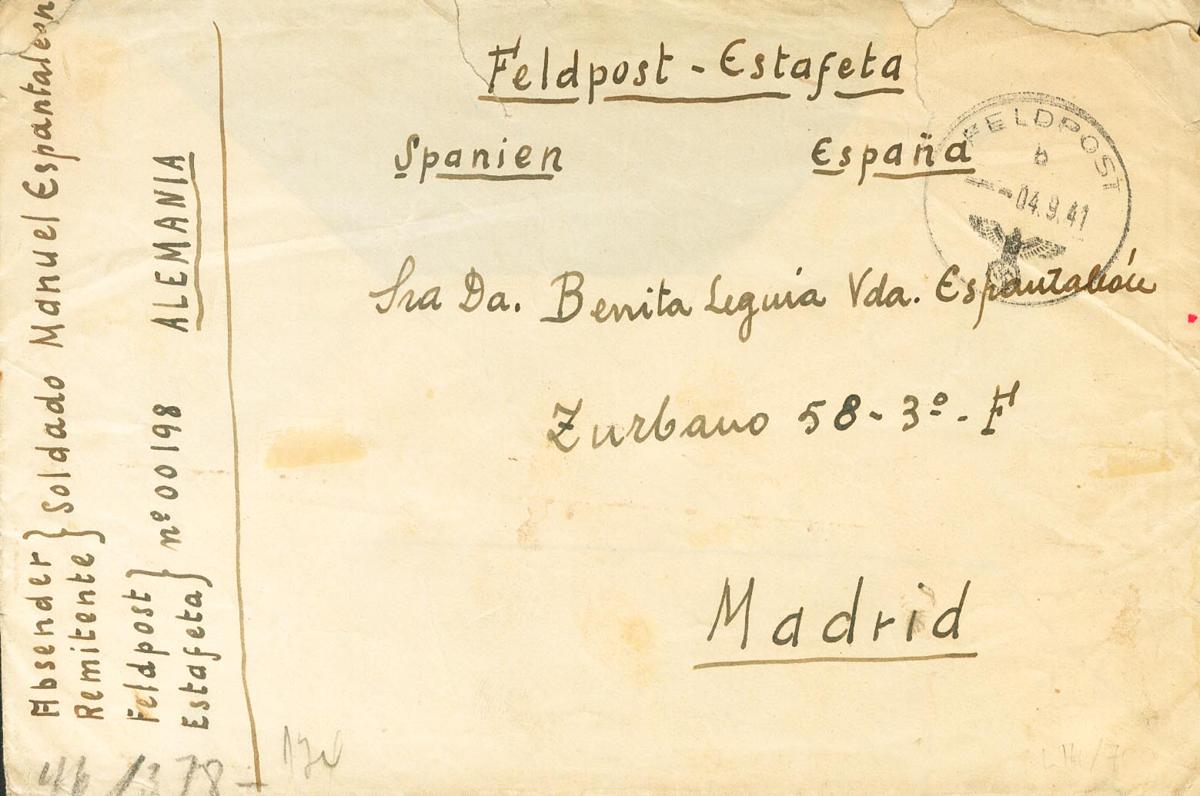 1941. EN MARCHA HACIA EL FRENTE (4 de Septiembre). FELDPOST Nº00198 (Jefatura de la División) a MADRID. Fechador FELDPOST / B. BONITA Y RARA.