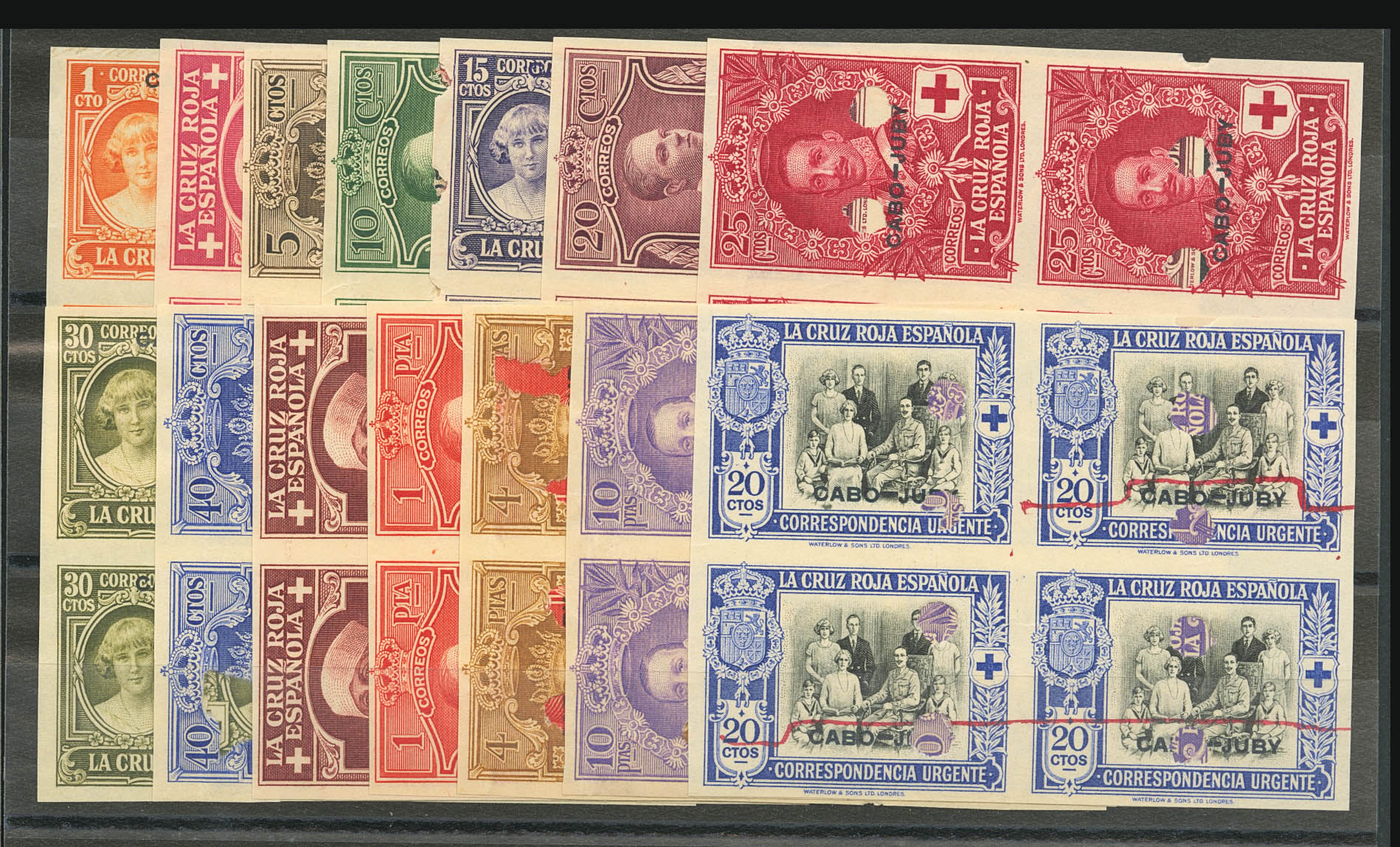 (★) 26/39MTs(4). 1926. Serie completa, en bloque de cuatro. SIN DENTAR y con TALADRADOS. MAGNIFICA Y RARA. Edifil 2018: 1.420 Euros