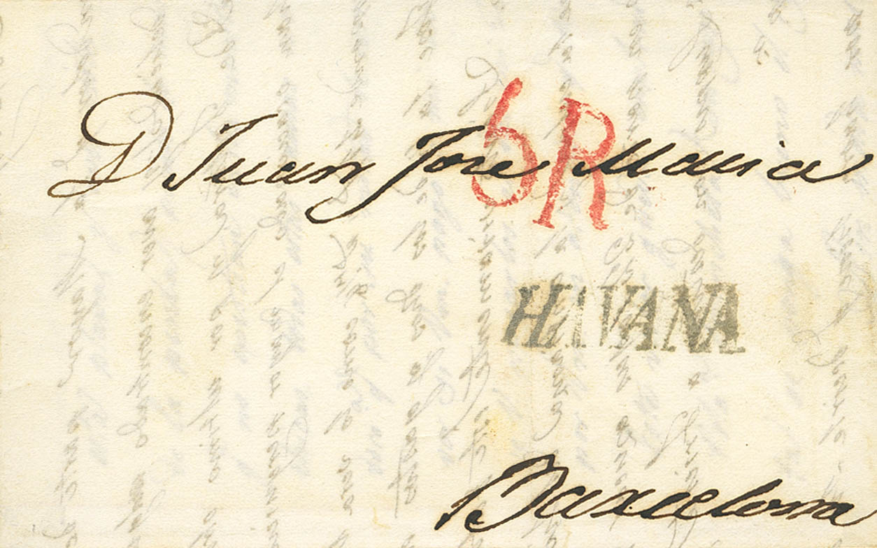 1828. LA HABANA a BARCELONA. Marca HAVANA (P.E.11) edición 2004. MAGNIFICA Y RARA.
