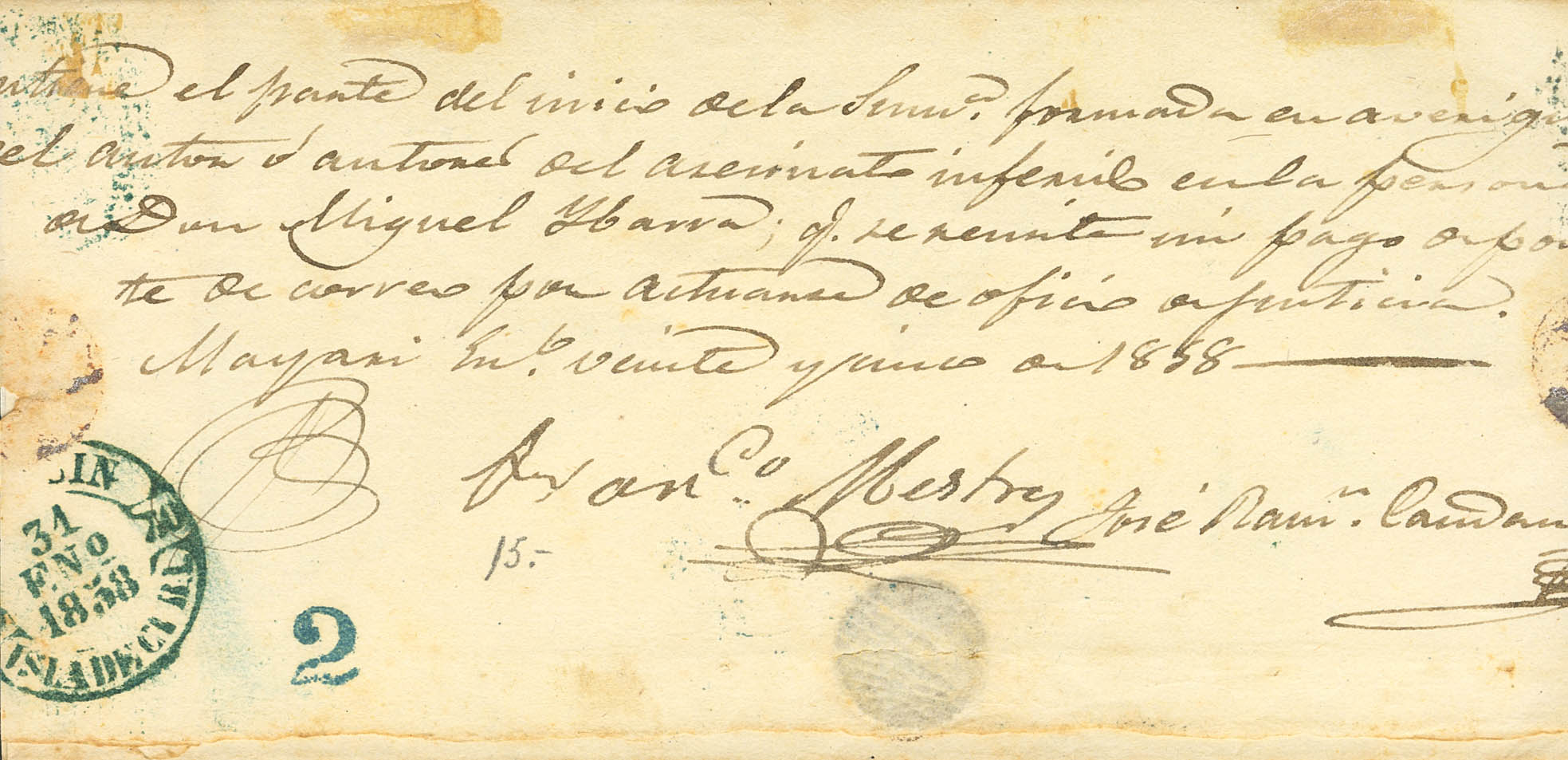 1858. MAYARI a HOLGUIN. Baeza MAYARI / ISLA DE CUBA, en azul. MAGNIFICA Y RARA.