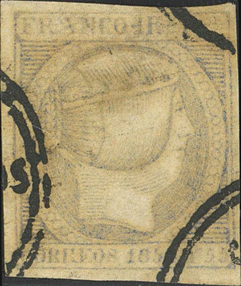 3b. 1854. 1 real gris azulado (grandes márgenes). Matasello administrativo. MAGNIFICO. Cert. CEM.