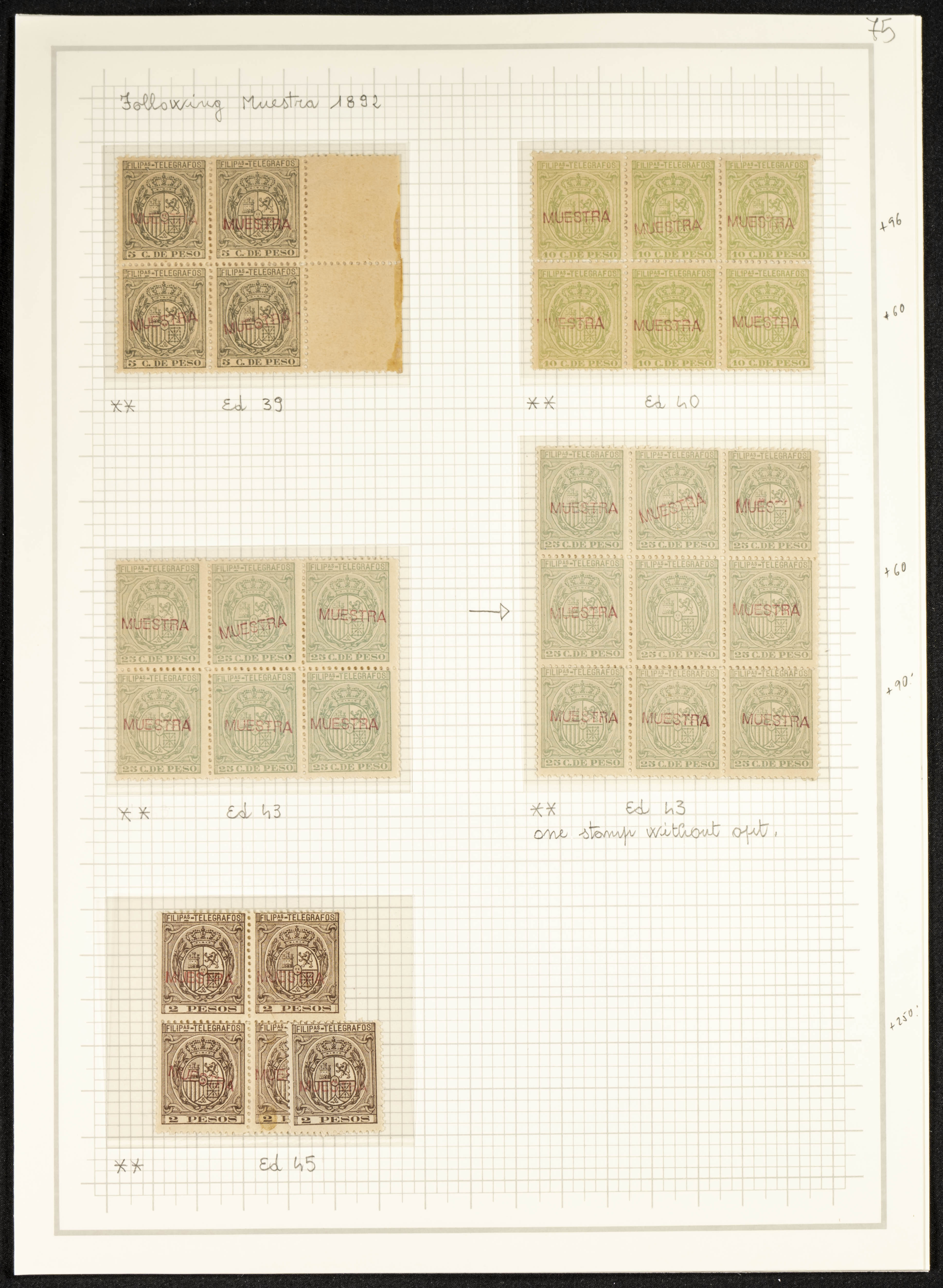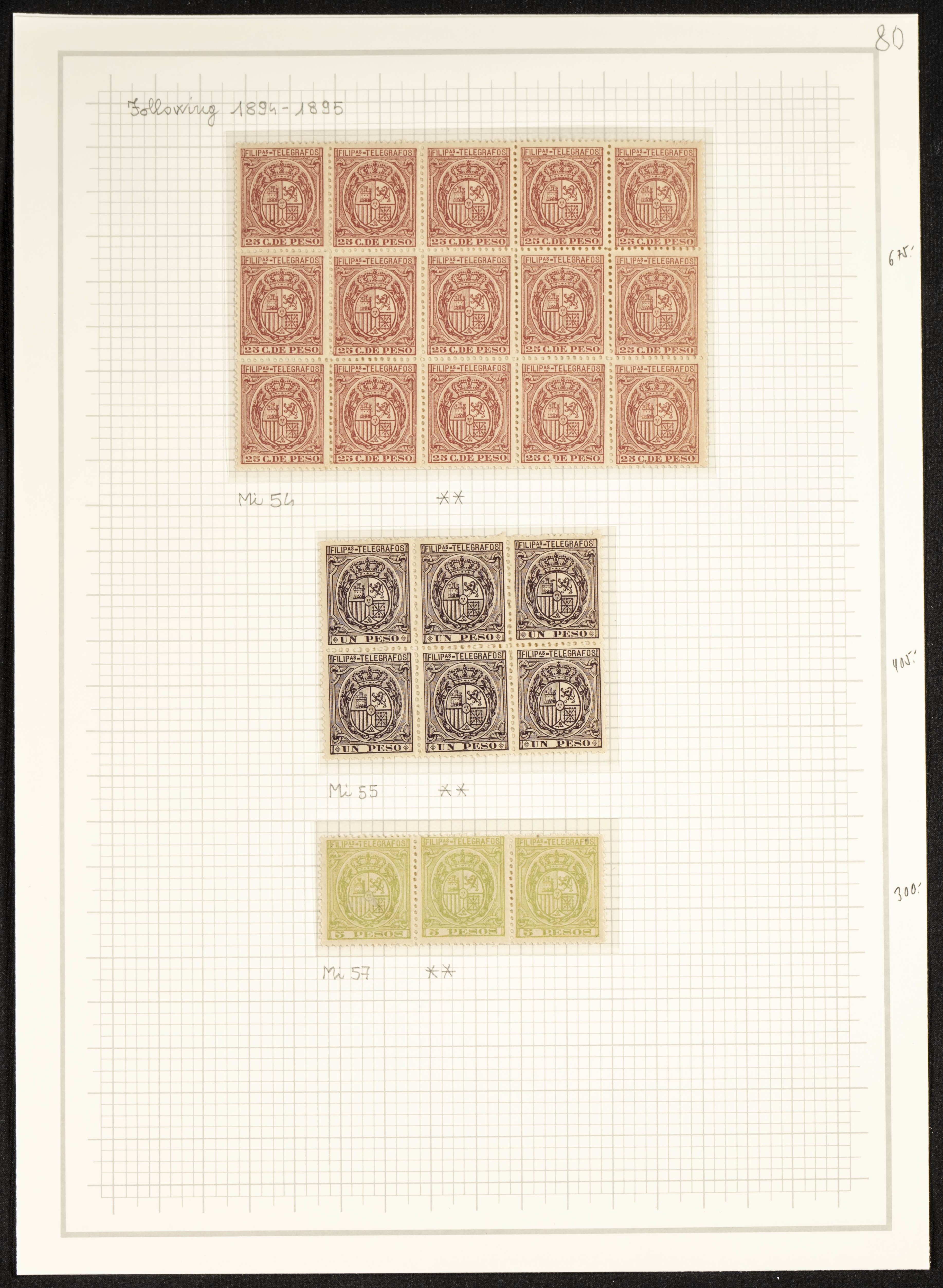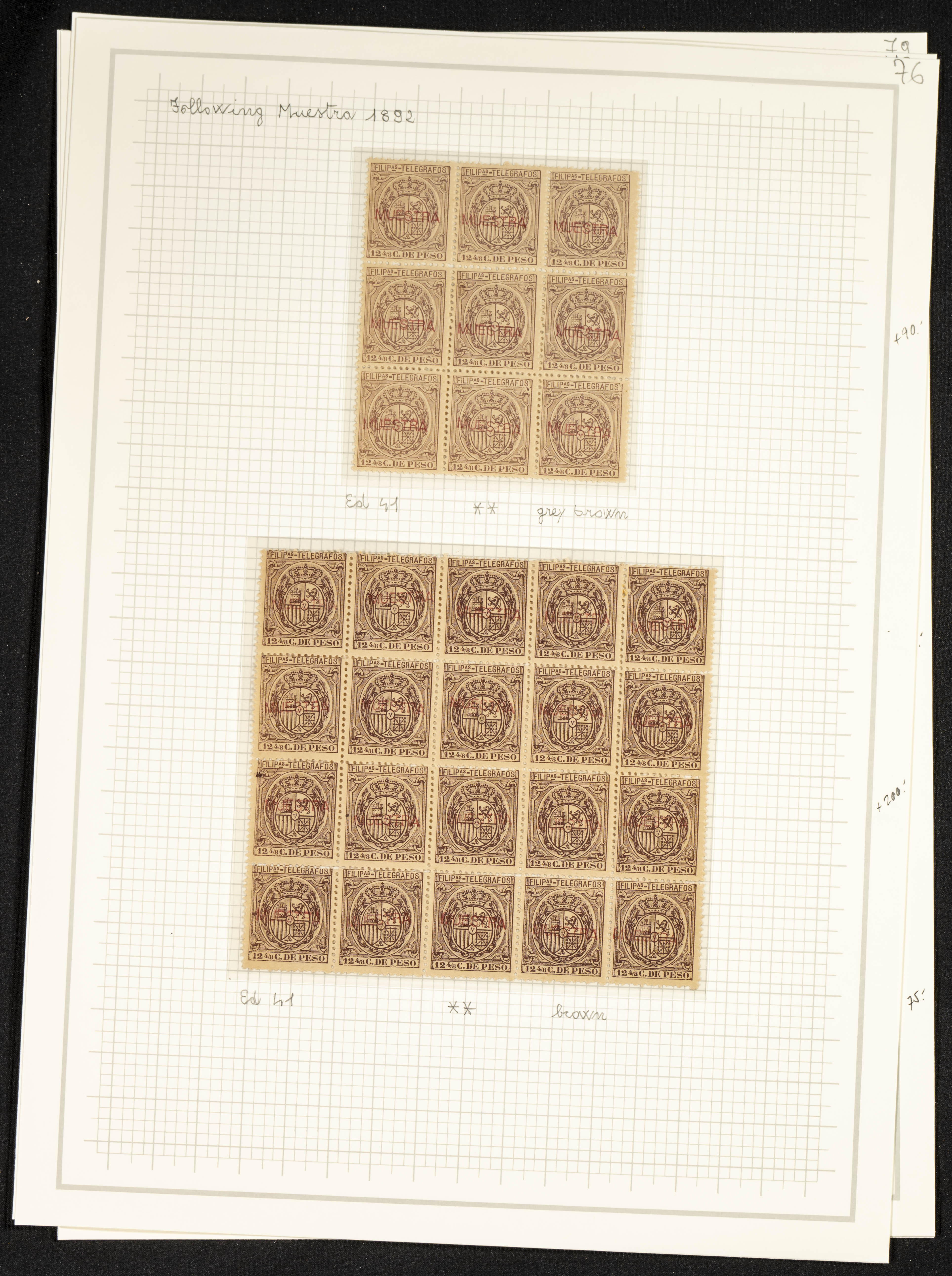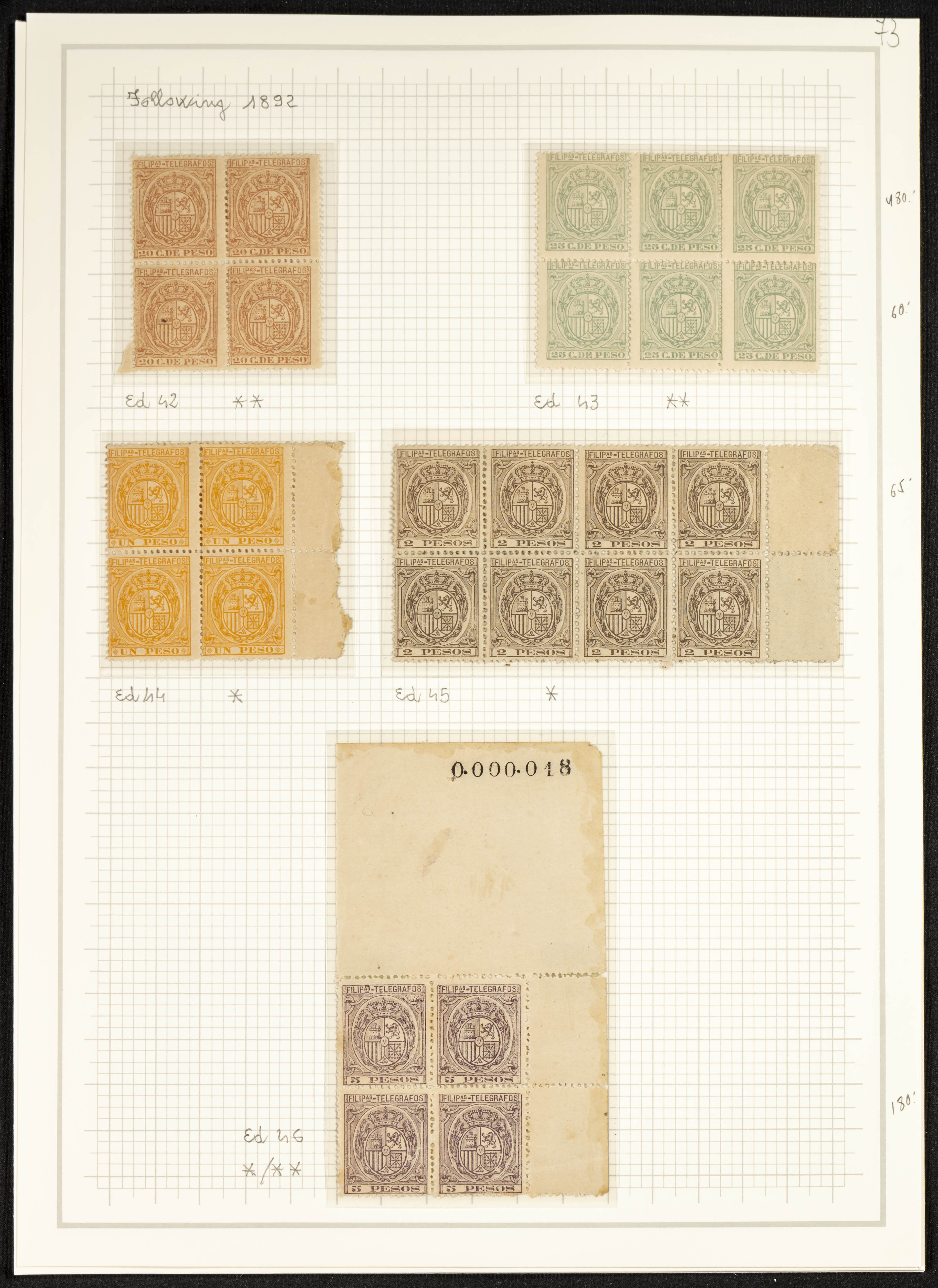 ★★/★1890. Interesante conjunto de sellos sueltos de Telégrafos de Filipinas entre 1890 y 1896, en nuevo y la mayoría sin fijasellos e incluyendo algún valor clave, incluyendo bloques de diversos tamaños. A EXAMINAR. Edifil 2018: 7.243 Euros