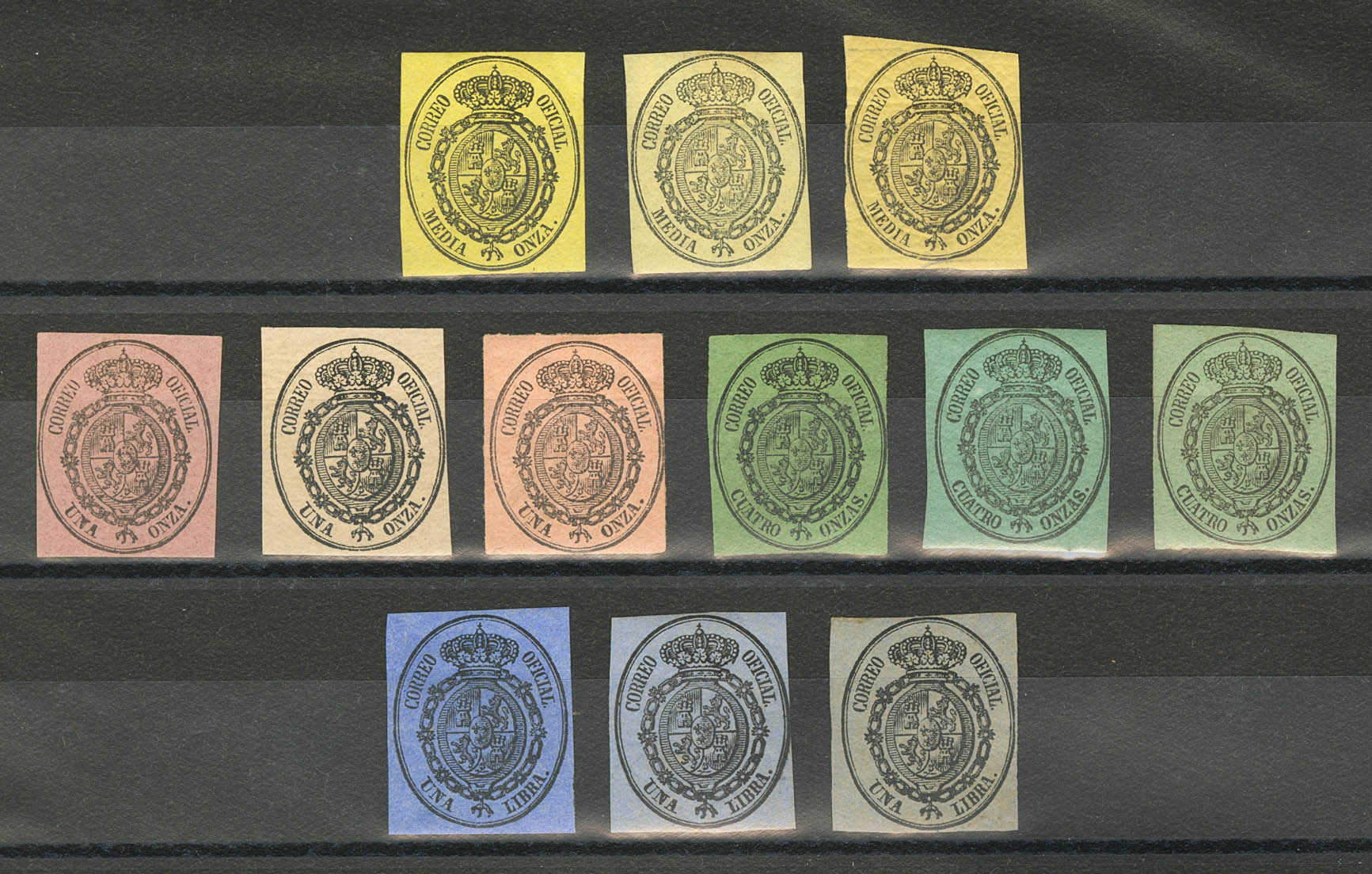 ★ 35/38(3). 1855. Tres series completas, todos los sellos con diferentes tonalidades. MAGNIFICAS.