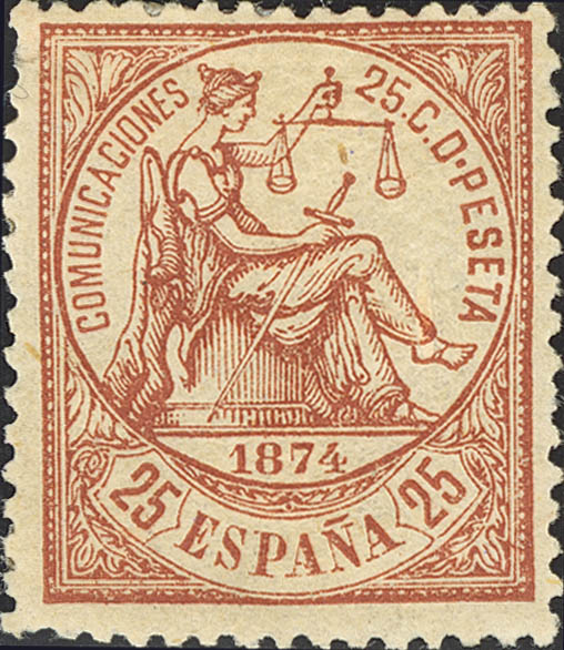★ 147. 1874. 25 cts castaño. MAGNIFICO.