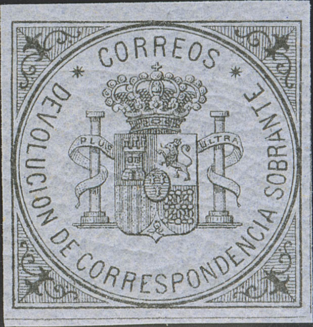 ★★ 172. 1875. Sin cifra del valor, negro sobre azulado. MAGNIFICO.