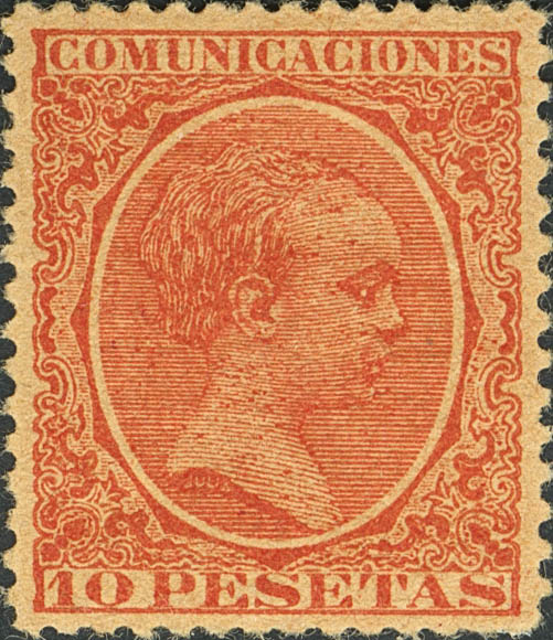 ★ 228. 1889. 10 pts bermellón. Color muy intenso y excelente centraje. MAGNIFICO. Cert. GRAUS.