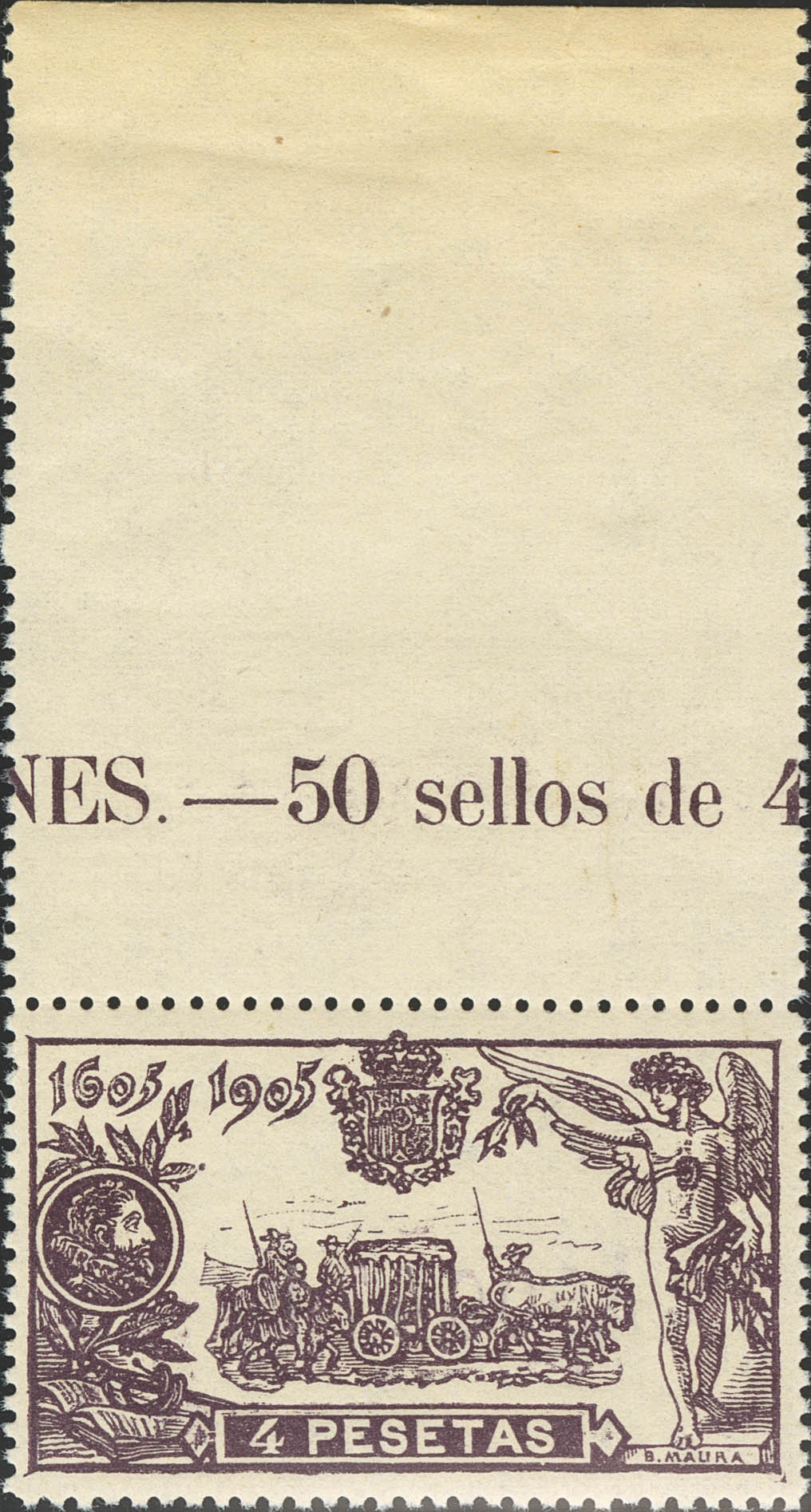 ★★ 265. 1905. 4 pts violeta, borde de hoja. Centraje excepcional. PIEZA DE LUJO. Edifil 2025: ++245 Euros