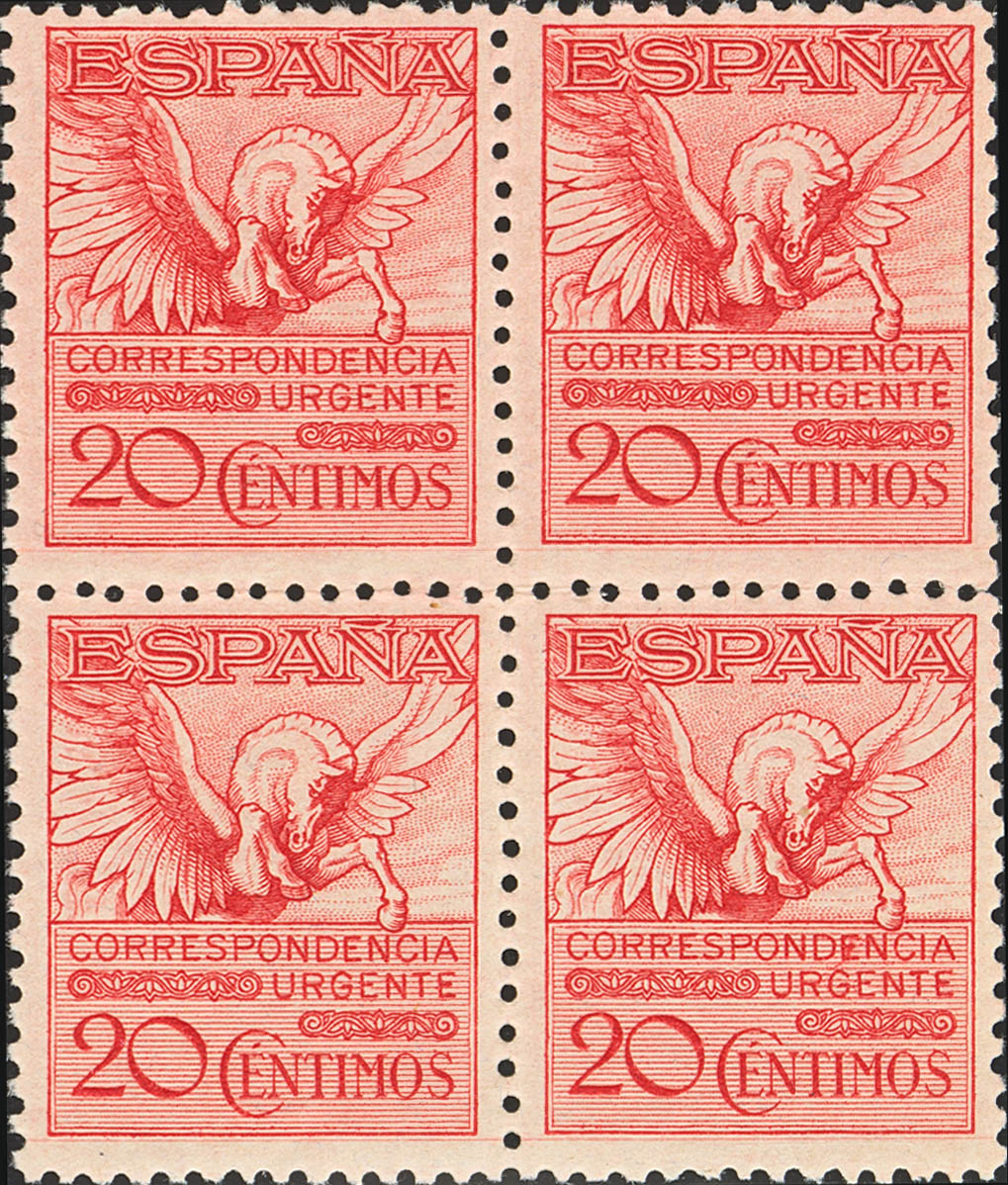 ★★ 454(4). 1929. 20 cts rosa, bloque de cuatro. Excelente centraje. MAGNIFICO. Edifil 2025: ++160 Euros