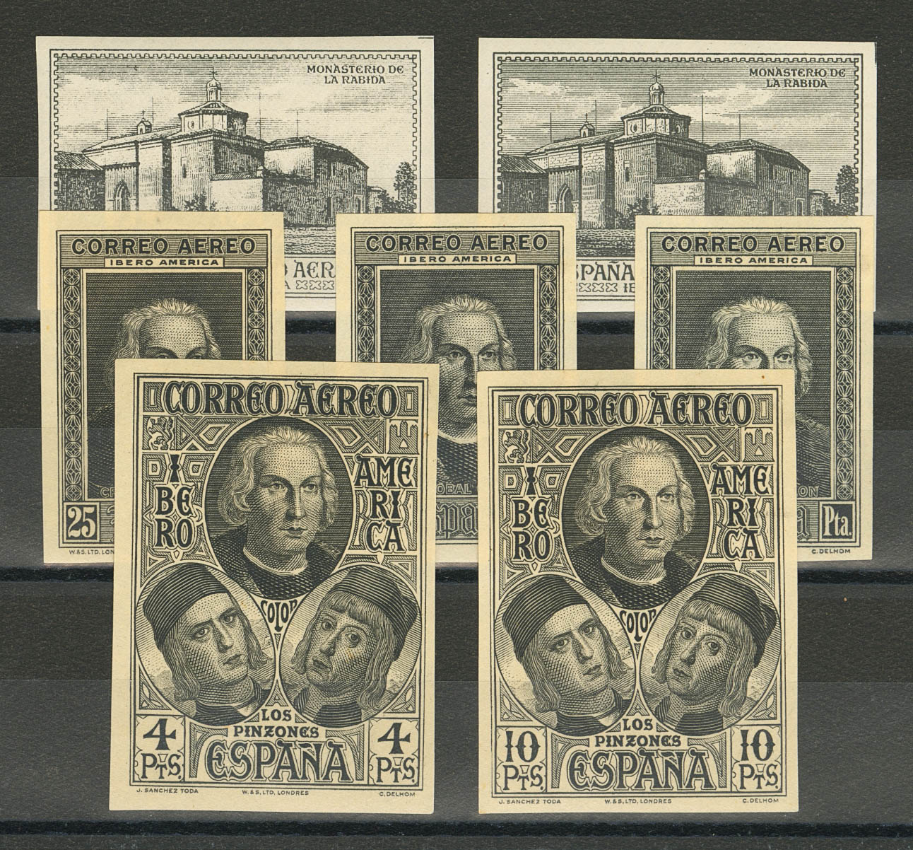 (★) 559/65P. 1930. Serie completa, siete valores. ENSAYOS DE PLANCHA SIN DENTAR, en negro. MAGNIFICA Y RARA. (Gálvez CA357/63)