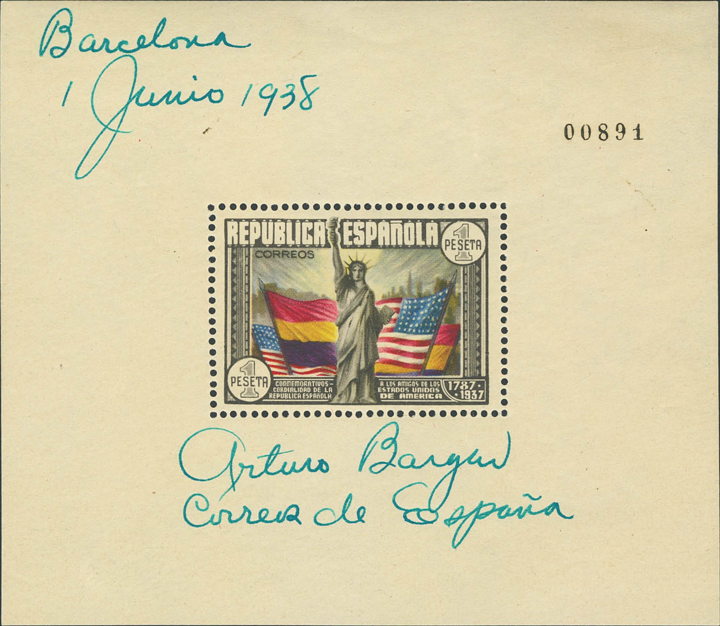 ★ 764. 1938. Hoja bloque. Firmada por Arthur Barguer. MAGNIFICA.