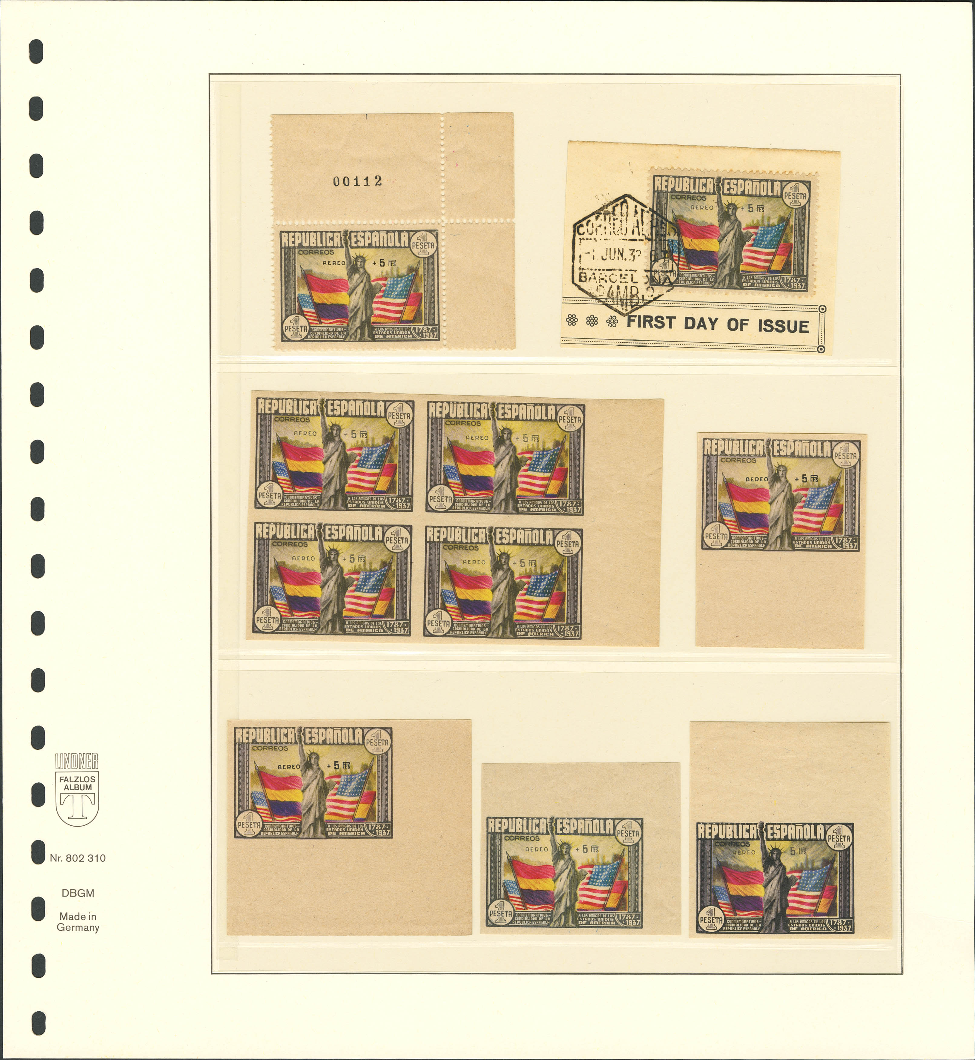 ★★/ 765(20). 1938. Conjunto de veinte sellos del 1 pts AEREO + 5 PTS (incluyendo sin dentar y variedades de perforación) de la emisión del Aniversario de la Constitución de los Estados Unidos, incluye cinco certificados (tres COMEX, un CEM y un SORO)(puede existir algún valor con la sobrecarga falsa, muchos de los ejemplares con marquilla al dorso, recordamos que se trata de un lote vendido sin derecho a reclamación). IMPRESCINDIBLE EXAMINAR.