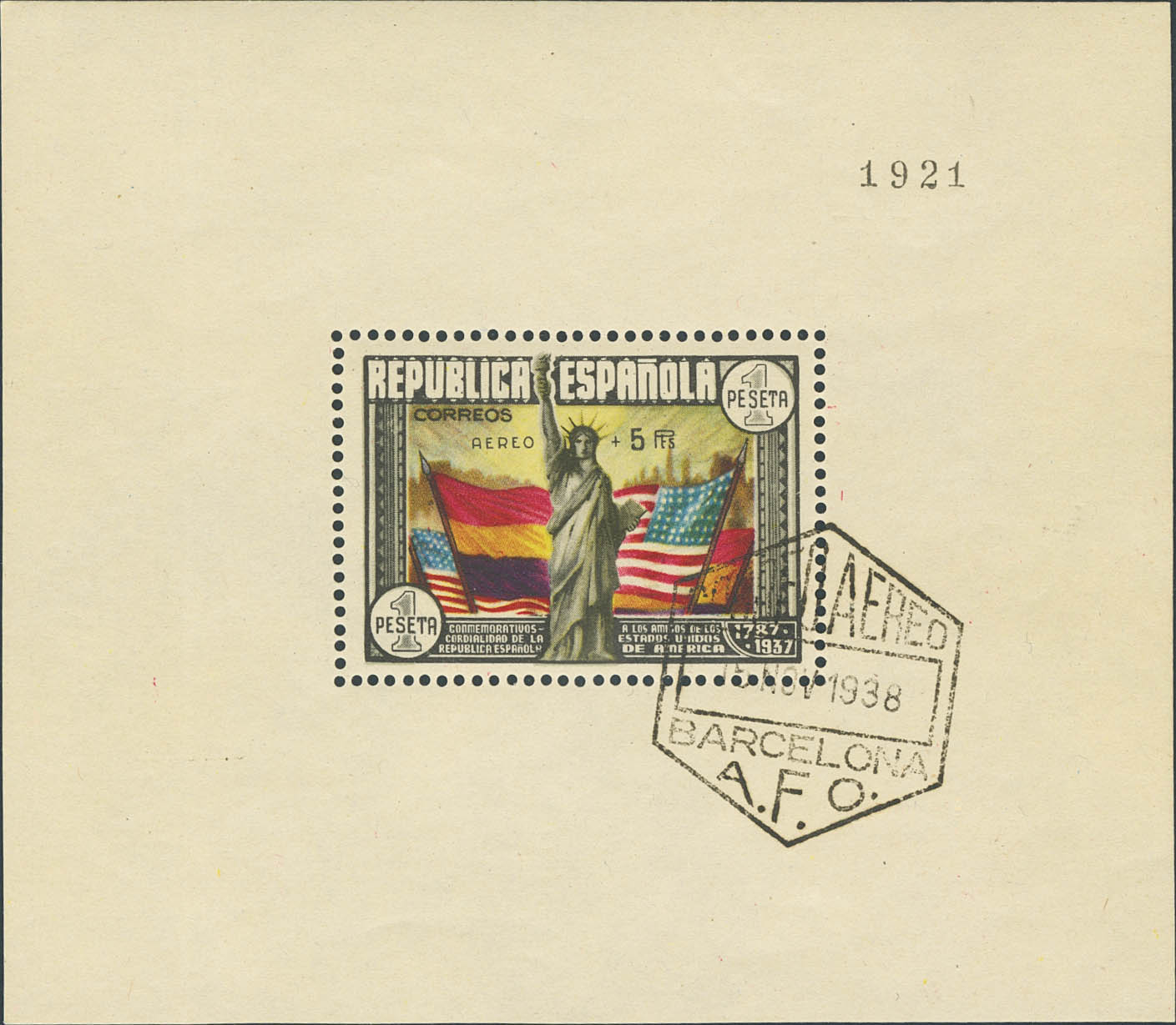 766. 1938. AEREO+5 PTS. MAGNIFICA. Cert. CEM. Edifil 2025: 1.800 Euros