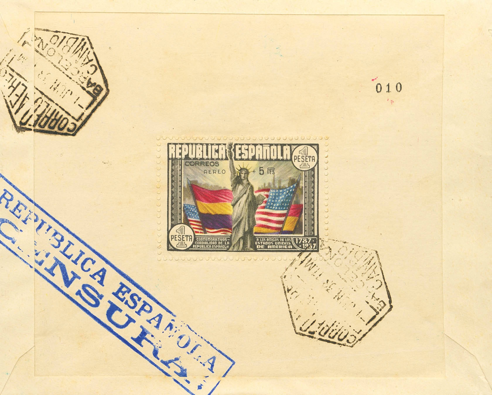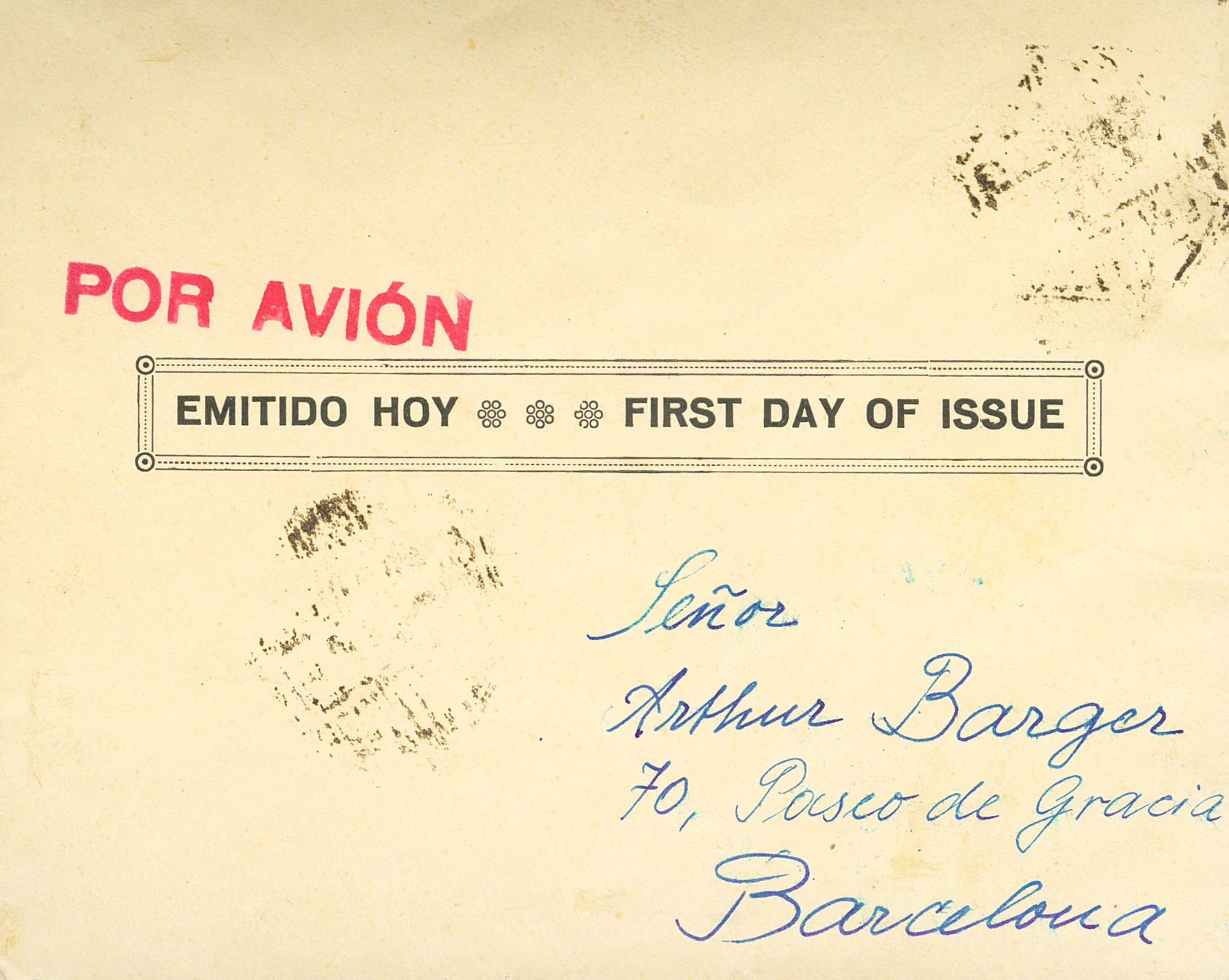 766. 1938. AEREO+5 PTS. Sobre de Primer Día dirigido a BARCELONA. MAGNIFICA.