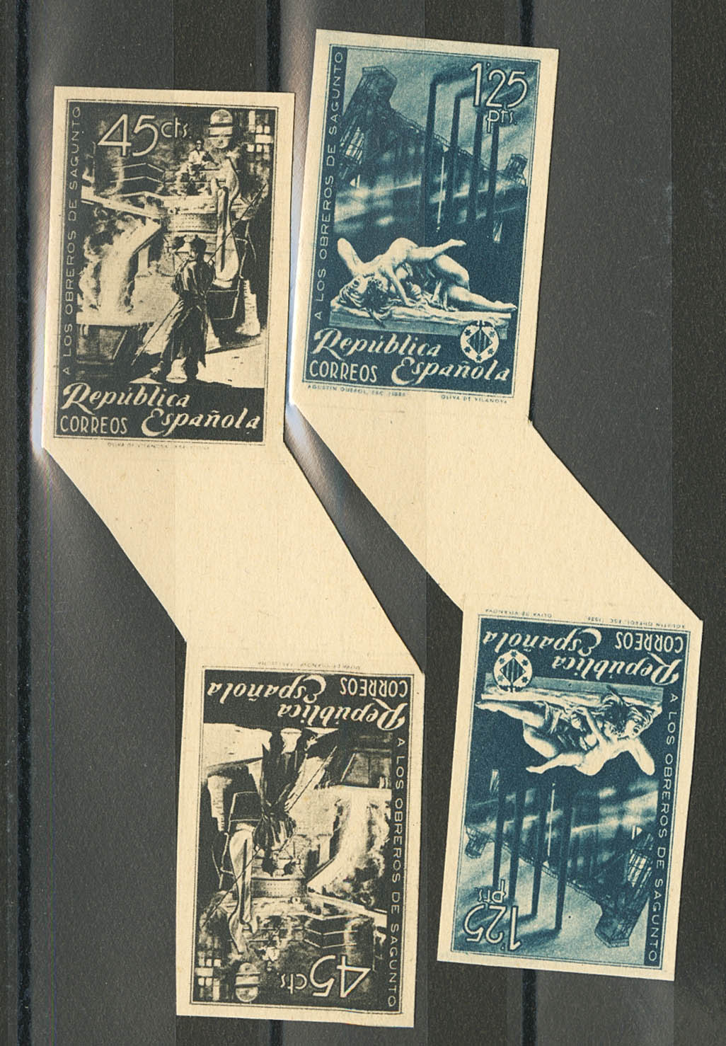 (★) 773/74pc(2). 1938. Serie completa, pareja con interpanel en diagonal. PAPEL CARTON y SIN DENTAR. MAGNIFICA. Edifil 2020: 152 Euros