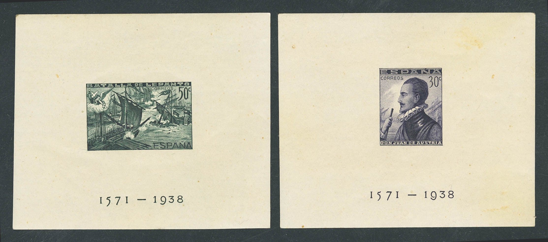 ★ 864/65. 1938. Hojas bloque (manchitas del tiempo). SIN DENTAR. BONITAS. Edifil 2025: 900 Euros