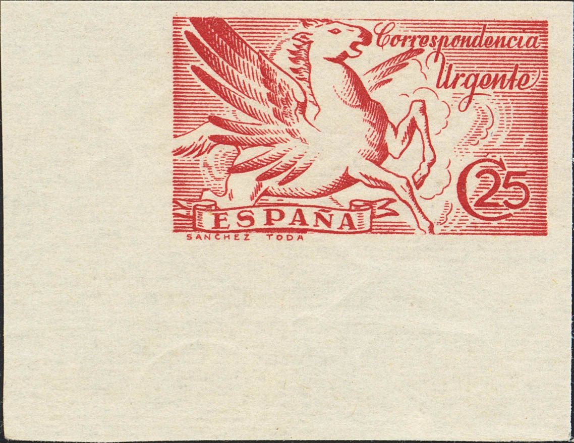 ★★ 879s. 1939. 25 cts carmín, esquina de pliego. SIN DENTAR. MAGNIFICO. Edifil 2025: ++32 Euros