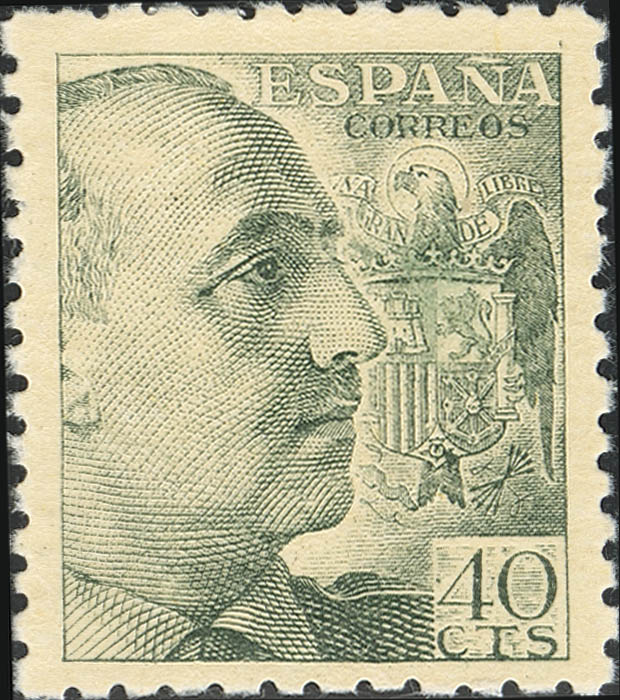 ★★ 925eg. 1939. 40 cts verde gris. IMPRESO EN EL LADO DE LA GOMA. MAGNIFICO.