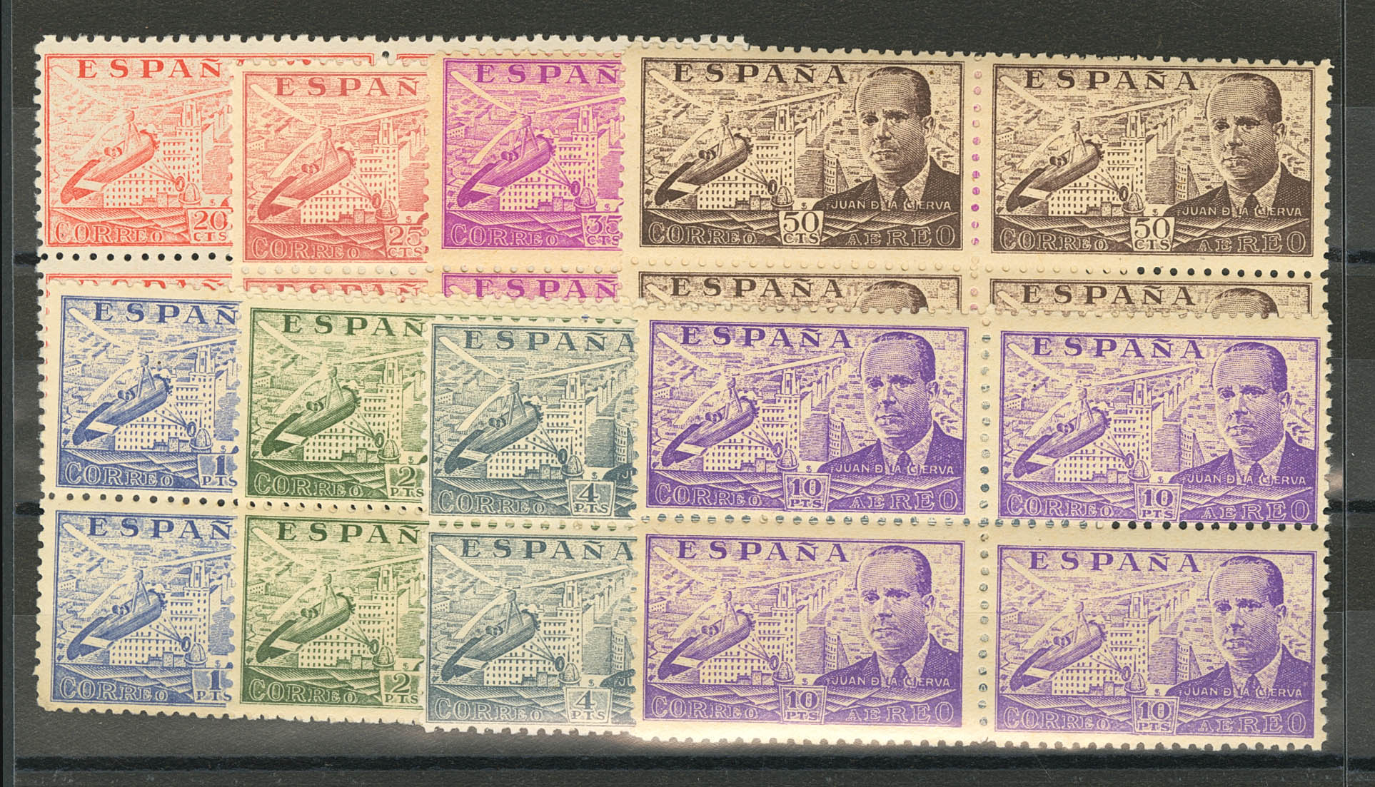 ★★ 940/47(4). 1941. Serie completa, bloque de cuatro. MAGNIFICA. Edifil 2025: +160 Euros