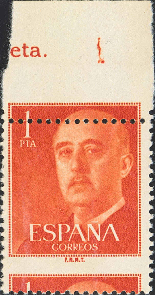 (★) 1153dv. 1955. 1 pts rojo, borde de hoja. DENTADO HORIZONTAL DESPLAZADO. MAGNIFICO. Edifil 2021: 38 Euros