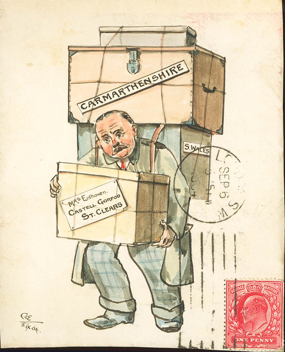 Yvert 107. 1904. 1 p rosa. Tarjeta Postal Ilustrada a mano de LONDRES a SAINT CLEARS. La tarjeta estuvo adherida probablemente en un sobre. BONITA Y RARA.