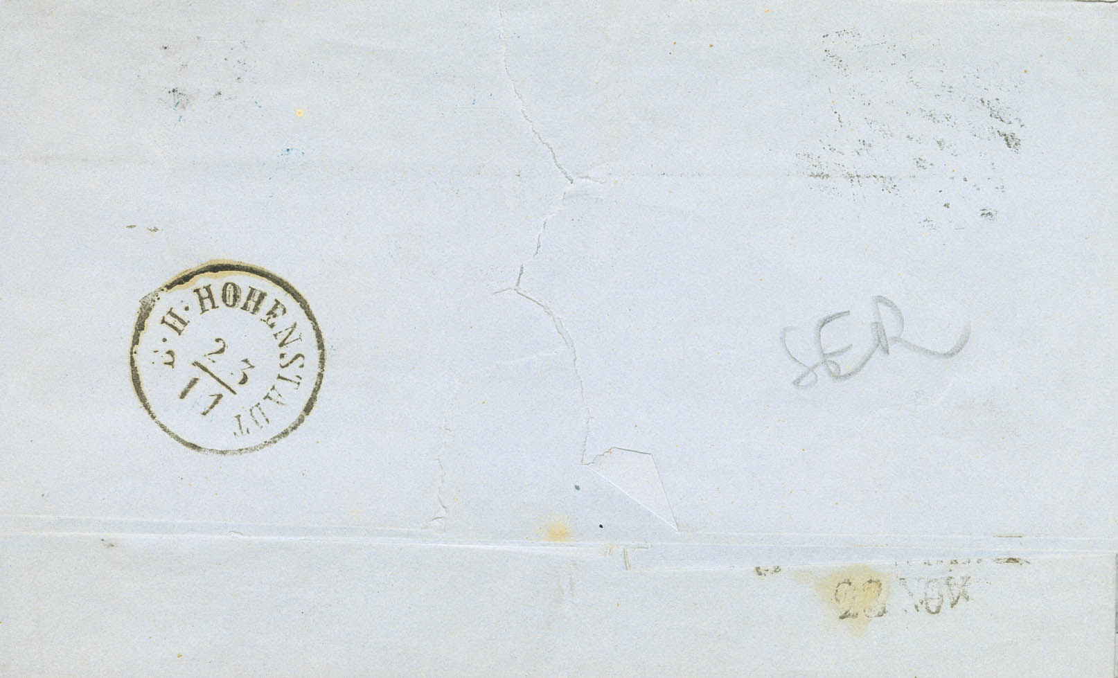 Yvert 5Aa. 1856. 40 cts azul error "49" EN LUGAR DE "40". MODENA a SCHOENBERG (MORAVIA). MAGNIFICA Y RARA VARIEDAD EN CARTA, ESPECIALMENTE A ESTE INUSUAL DESTINO.