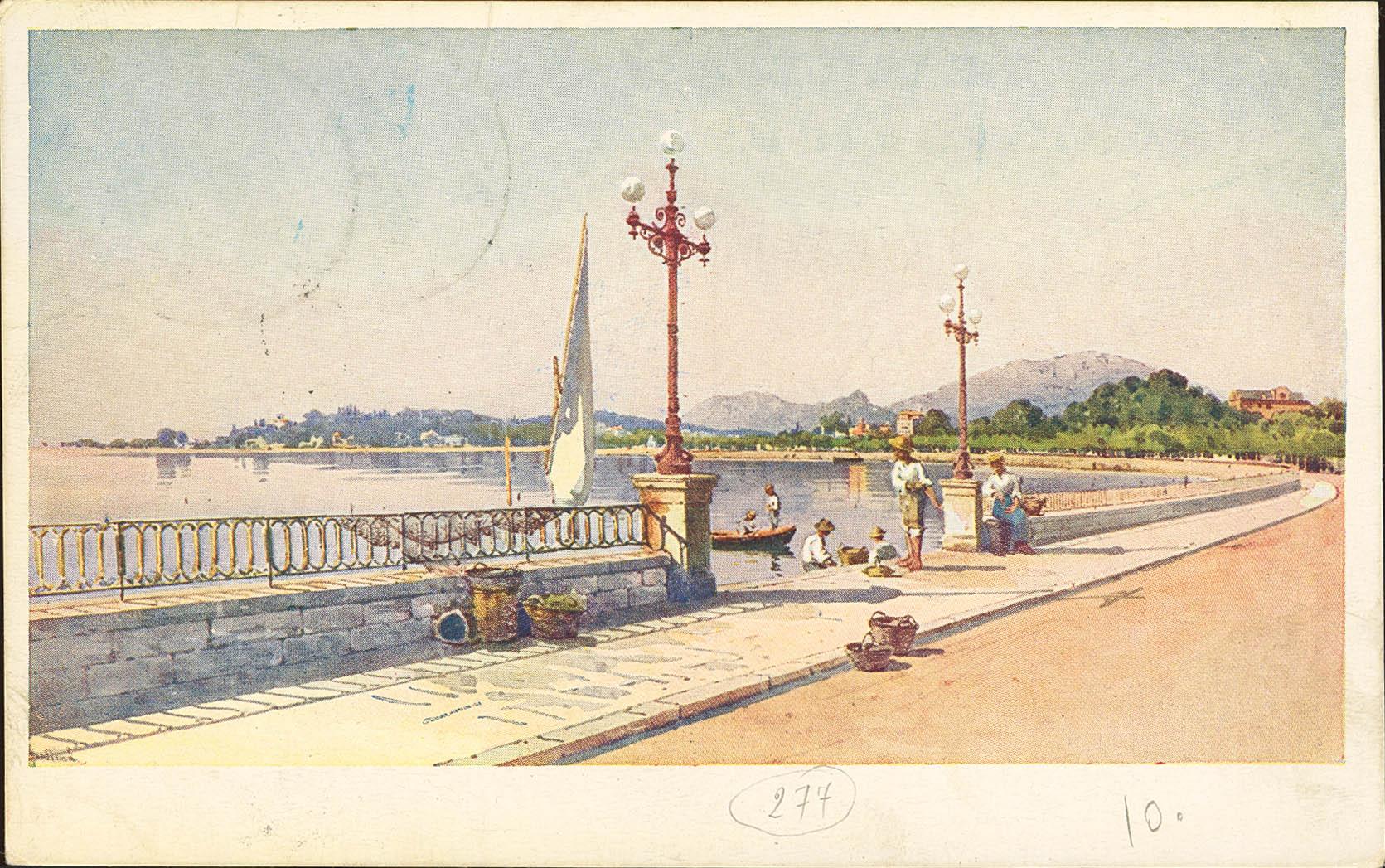 Yvert Italia 76/77. 1923. 5 cts verde y 10 cts rosa-rojo de Italia. Tarjeta Postal de CORFU a PRATO (ITALIA). Matasello CORFU / POSTE ITALIANE, remitida por un militar italiano en Corfú, con porte reducido de 15 cts con sellos sin sobrecarga, cuando estos se encontraban en servicio desde el 20 de Septiembre. MAGNIFICA Y RARA, LA OFICINA ITALIANA EN CORFU SOLO ESTUVO ABIERTA DIECISEIS DIAS.