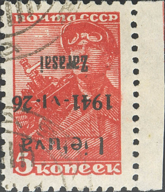1941. 5 k rojo ZARASAI. SOBRECARGA INVERTIDA (Tipo I). MAGNIFICO Y RARO. Dictamen Sr.V.E.KLEIN. (Michel 1aIK)