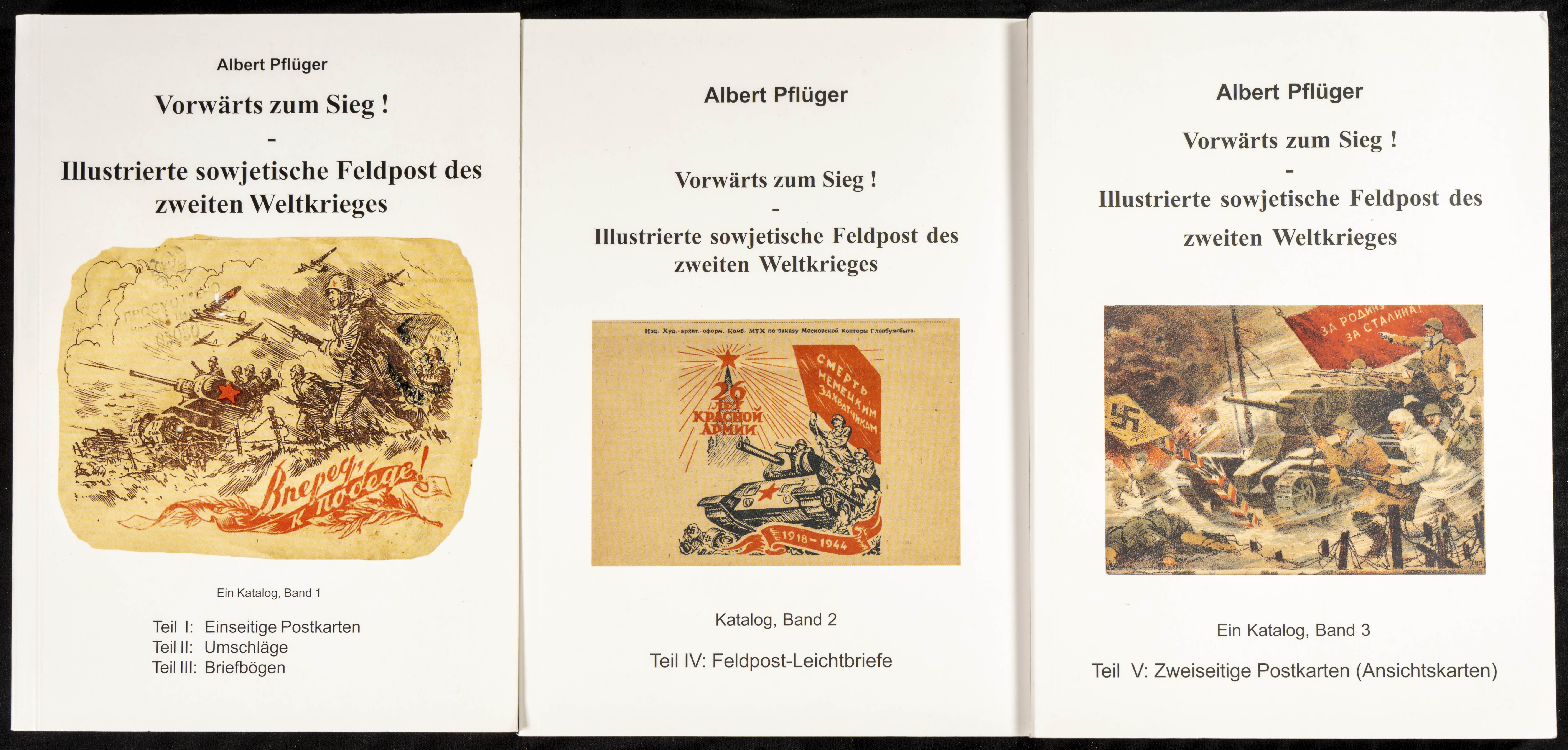 2011. VORWÄRTS ZUM SIEG! ILUSTRIERTE SOWJETISCHE FELDPOST DES ZWEITEN WELTKRIEGES, tres volúmenes, cinco capítulos. Albert Pflüger, 2011.