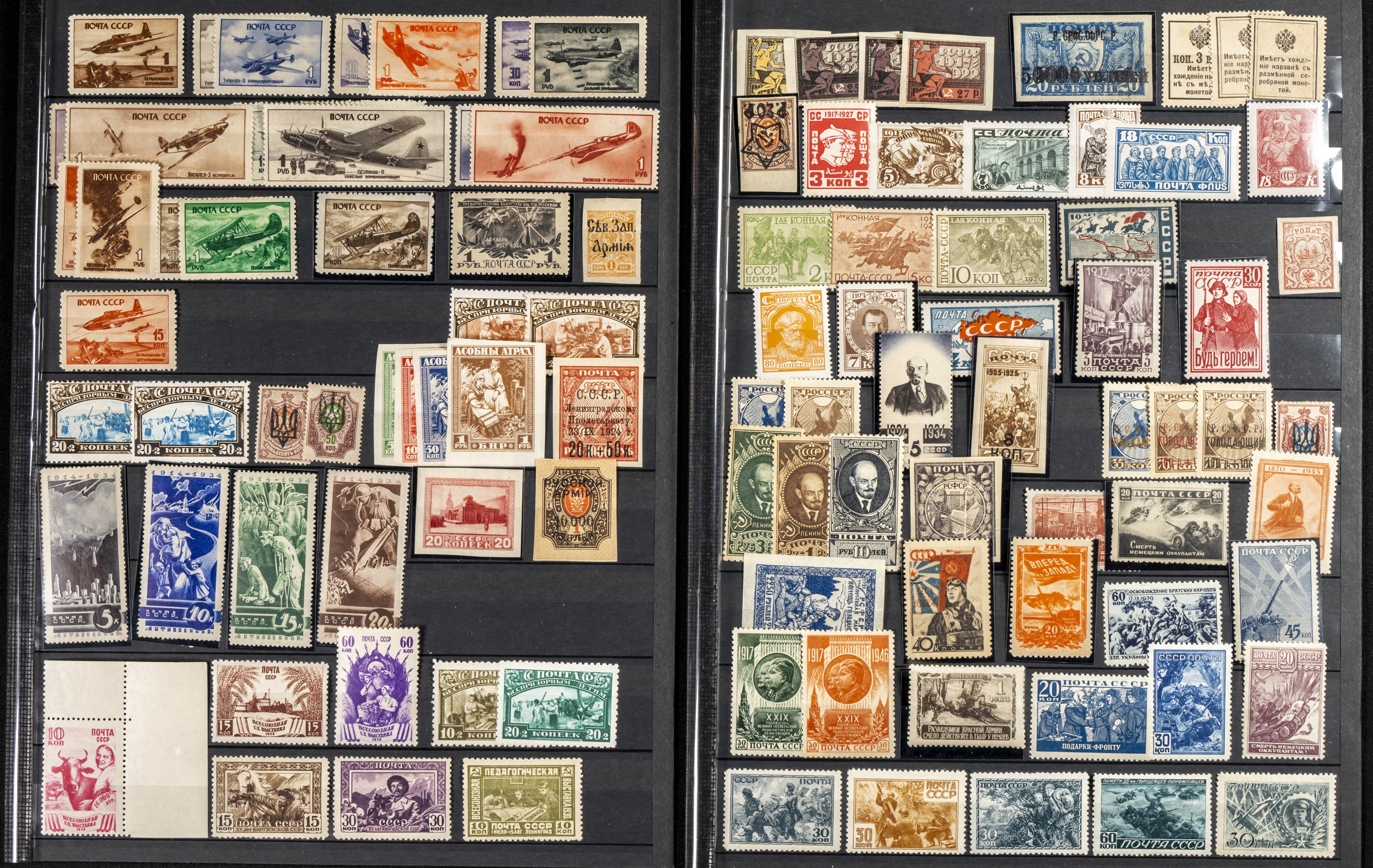 ★★/★(1915ca). Interesante conjunto de sellos sueltos y series completas de Rusia entre 1915 y 1945, en nuevo y la mayoría relacionados con el ejército o tema militar, incluye variedades, locales, aéreos y alguna emisión especial como Ejército Checo en Rusia. A EXAMINAR.