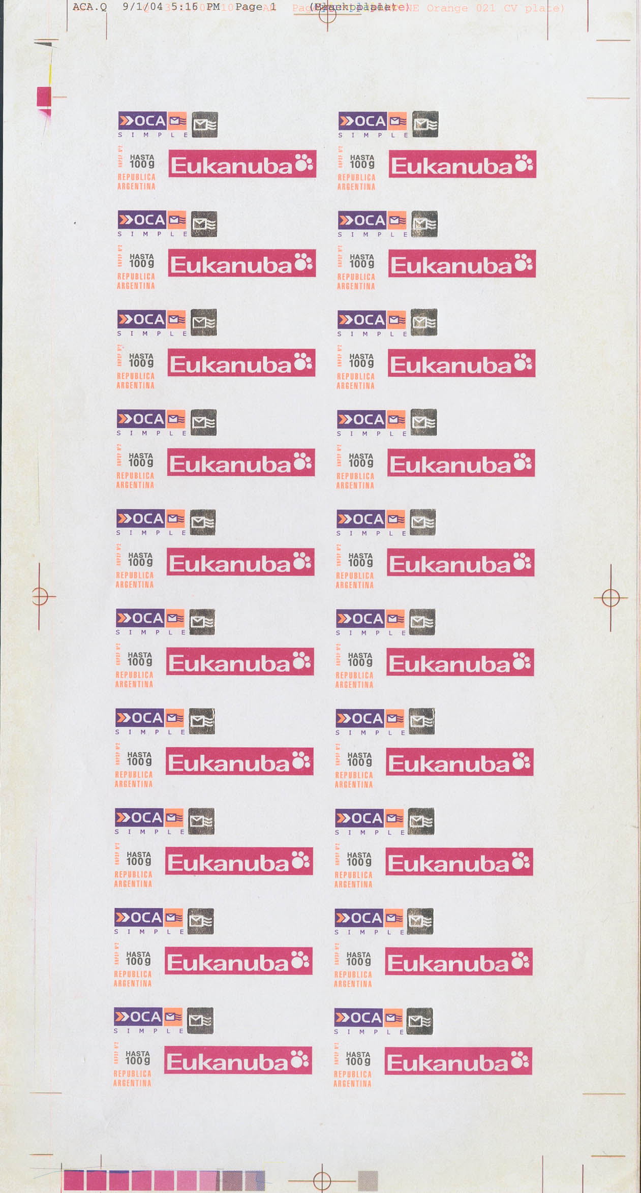 ★★2004. Sello privado OCA (simple) hasta 100 gr, hoja completa de veinte sellos. EUKANUBA (sin dentar). MAGNIFICA Y MUY RARA.