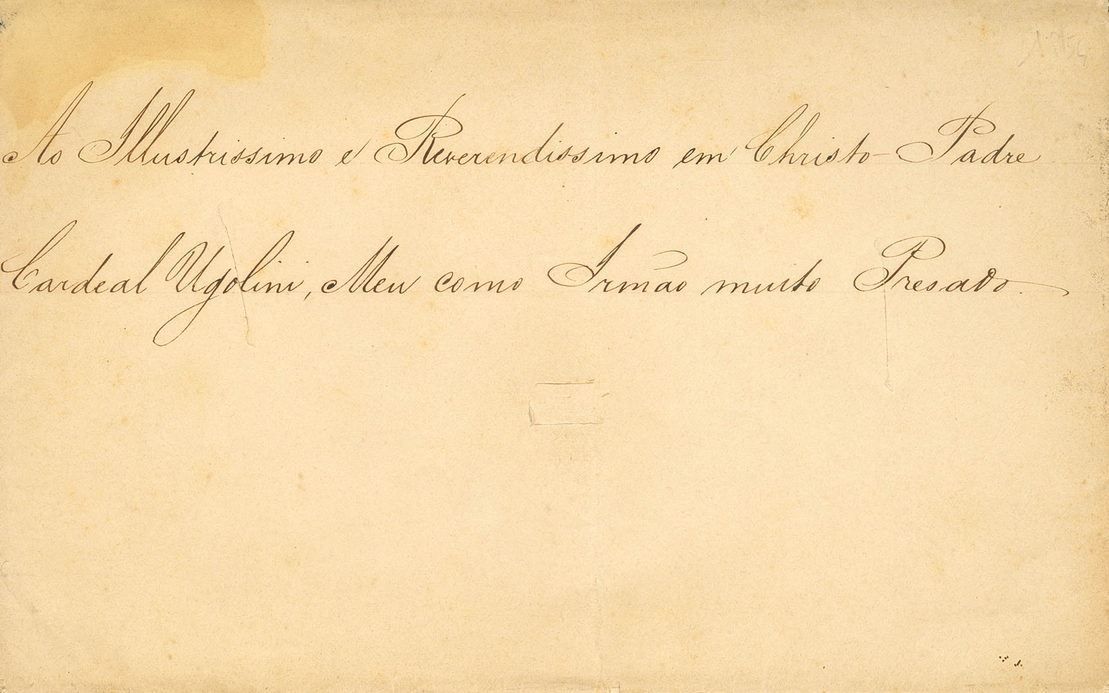 1854. RIO DE JANEIRO a ROMA (ITALIA), remitida privadamente por la Emperatriz Dª Teresa Cristina María de Dos Sicilias, consorte del Rey Don Pedro, firmada "Imperatriz" en el interior y oblea completa de cierre al dorso. MAGNIFICA Y MUY RARA, ESPECIALMENTE POR TRATARSE DE UN CORREO DIPLOMATICO TRANSATLANTICO.