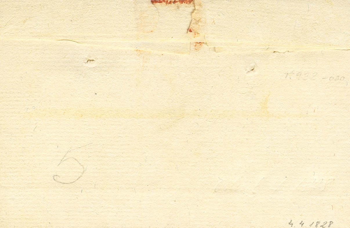 1828. SAN PEDRO a RIONEGRO. Marca S.PEDRO / FRANCA, en rojo (igual a la utilizada durante el periodo colonial español). MAGNIFICA Y MUY RARA.