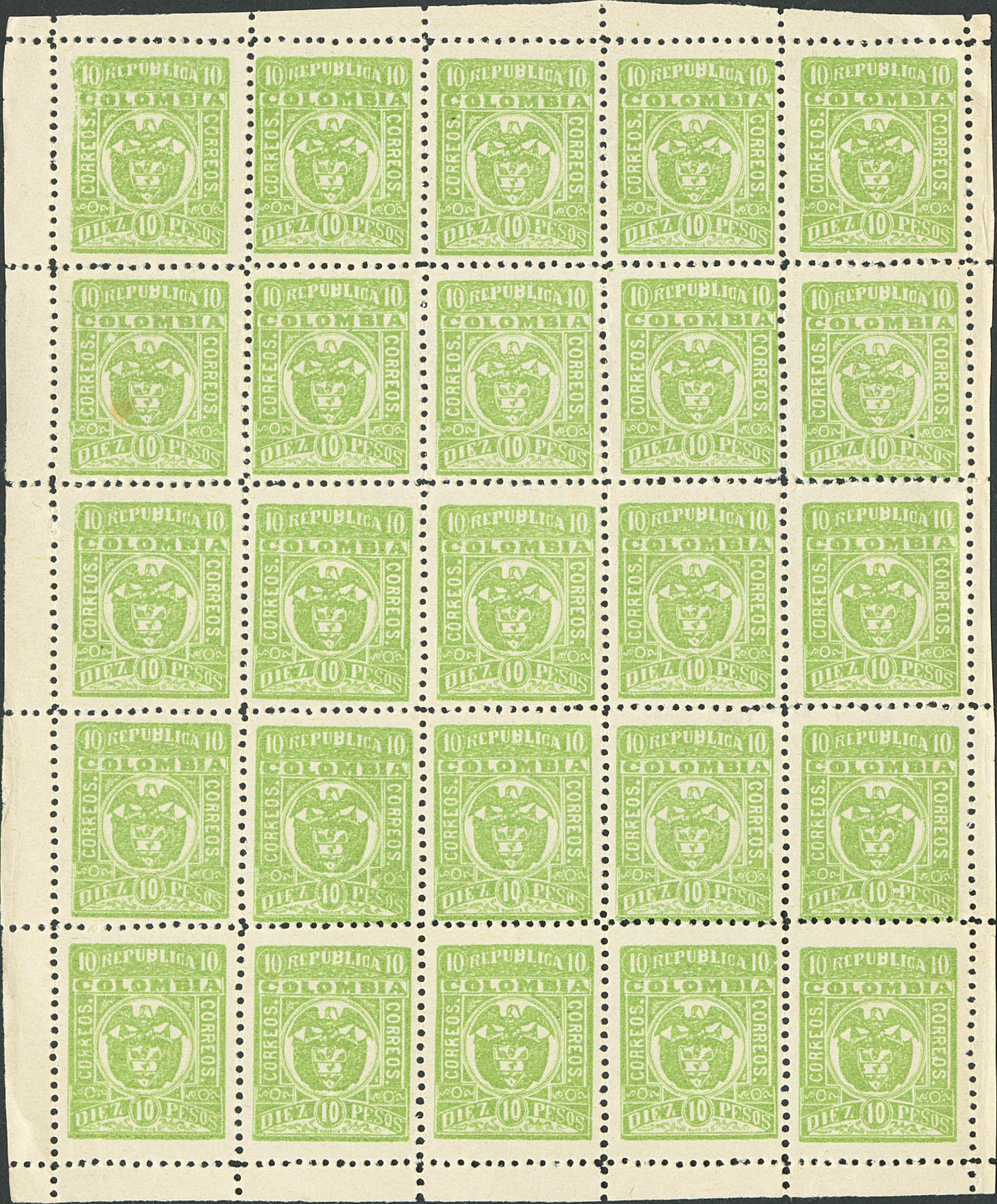 (★)Yvert 168A(25). 1903. 10 p verde, minihoja de veinticinco sellos (algún sello con dentado separado). MAGNIFICA.