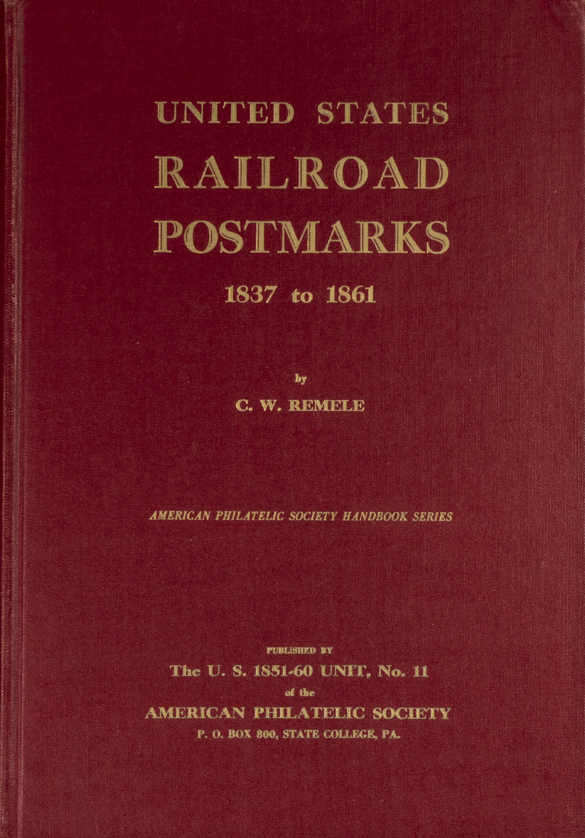 1958. UNITED STATES RAILROAD POSTMARKS 1837 TO 1861. C.W.Remele. American Philatelic Society, 1958.