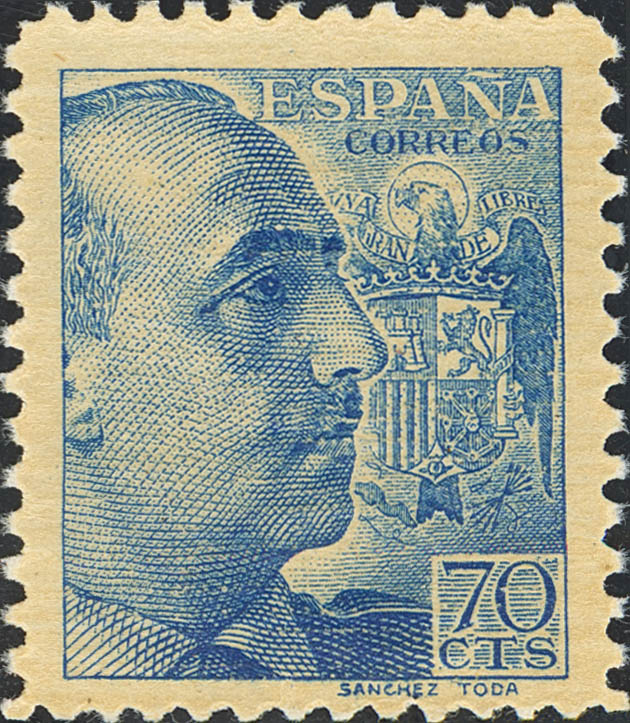 ★★ 874eg. 1939. 75 cts azul. IMPRESO EN EL LADO DE LA GOMA. MAGNIFICO. Edifil 2021: 25 Euros