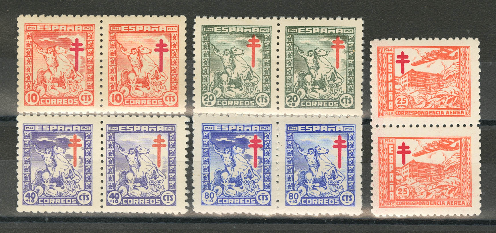 ★★ 985/88(2). 1944. Serie completa, en pareja (excelente centraje). MAGNIFICA. Edifil 2025: 70 Euros