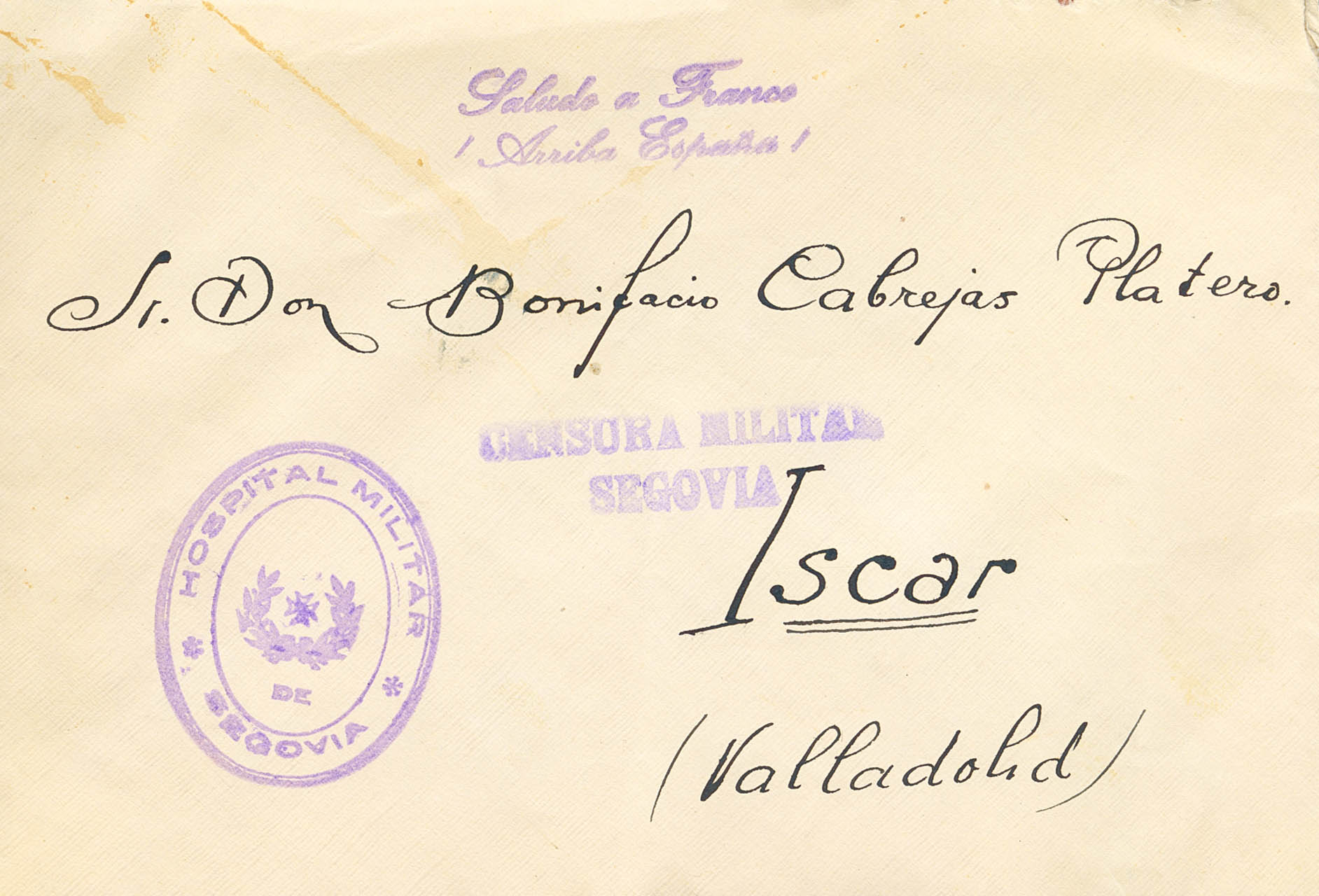 (1938ca). SEGOVIA a ISCAR (VALLADOLID). Marca HOSPITAL MILITAR / DE / SEGOVIA, en violeta. MAGNIFICA.