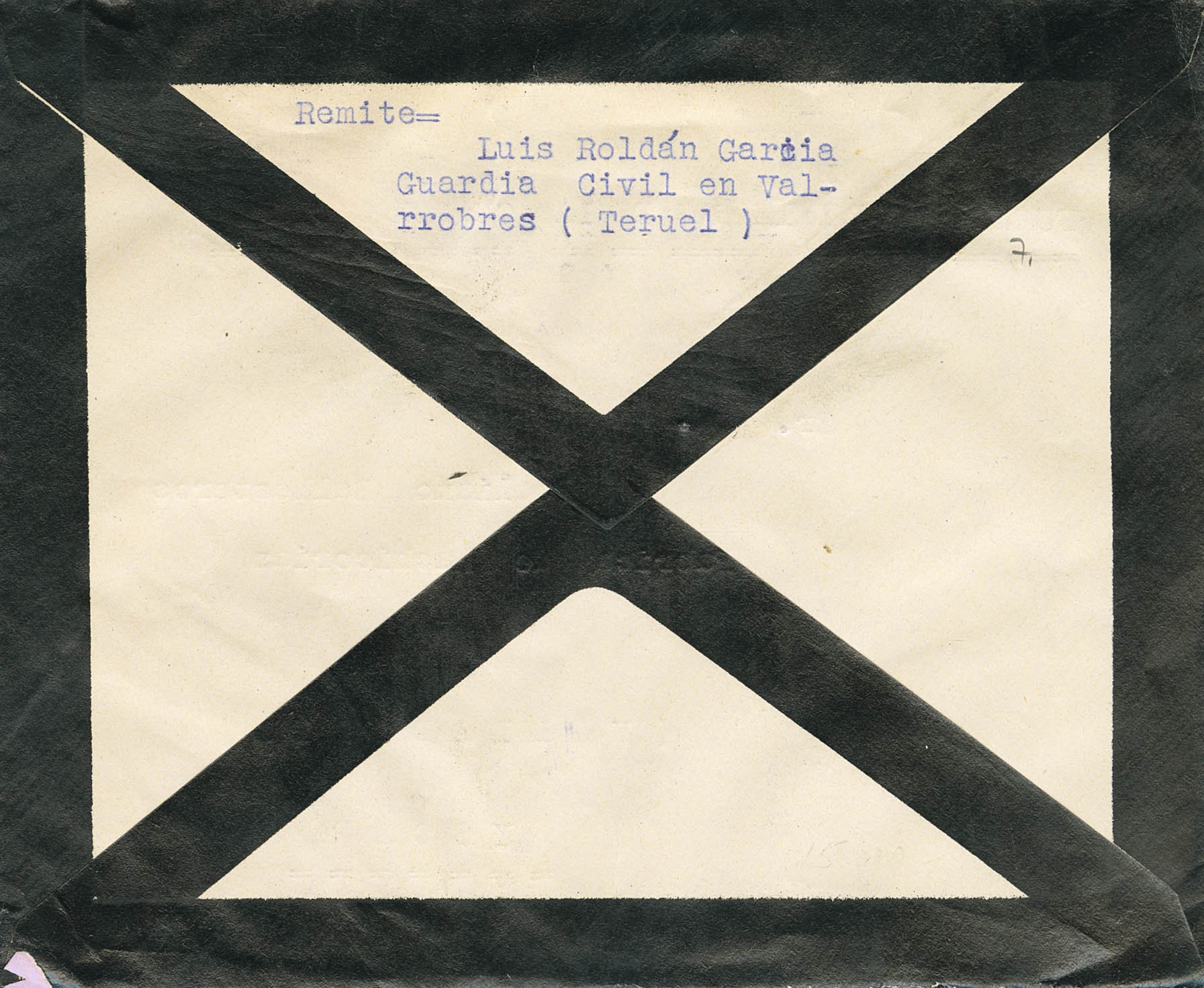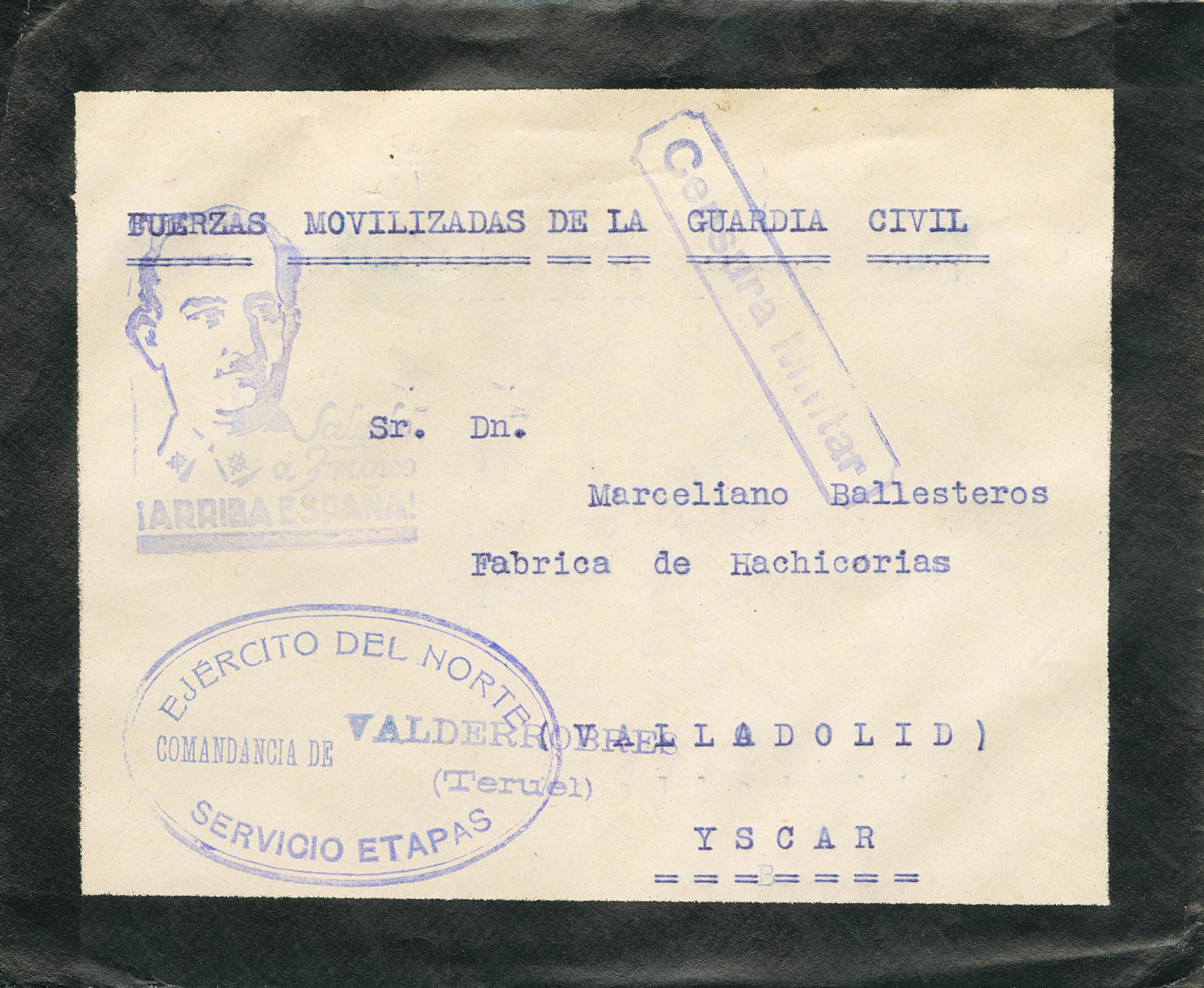 (1938ca). VALDERROBRES (TERUEL) a ISCAR (VALLADOLID). Marca EJERCITO DEL NORTE / COMANDANCIA DE VALDERROBRES / SERVICIO ETAPAS, en violeta. MAGNIFICA.