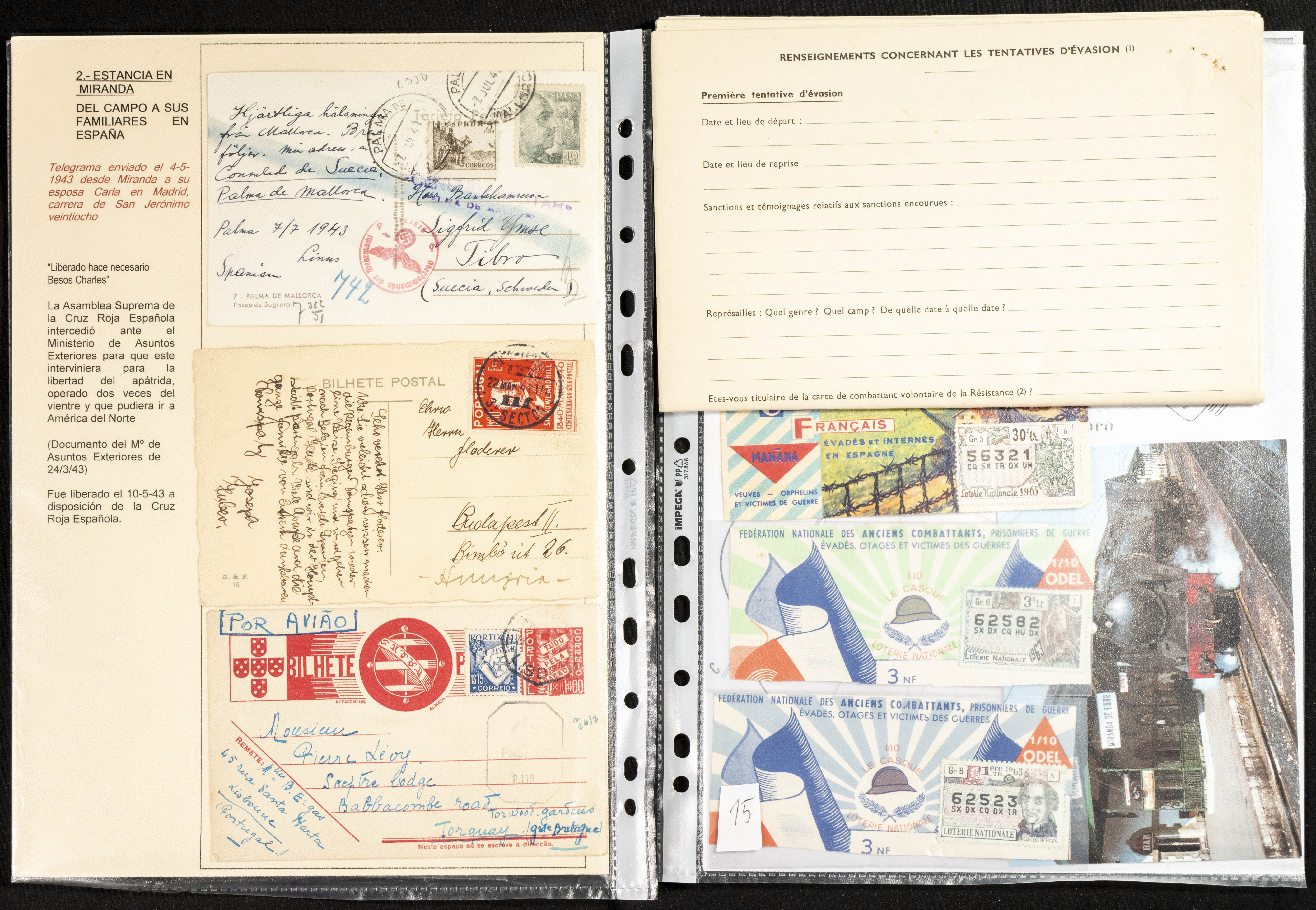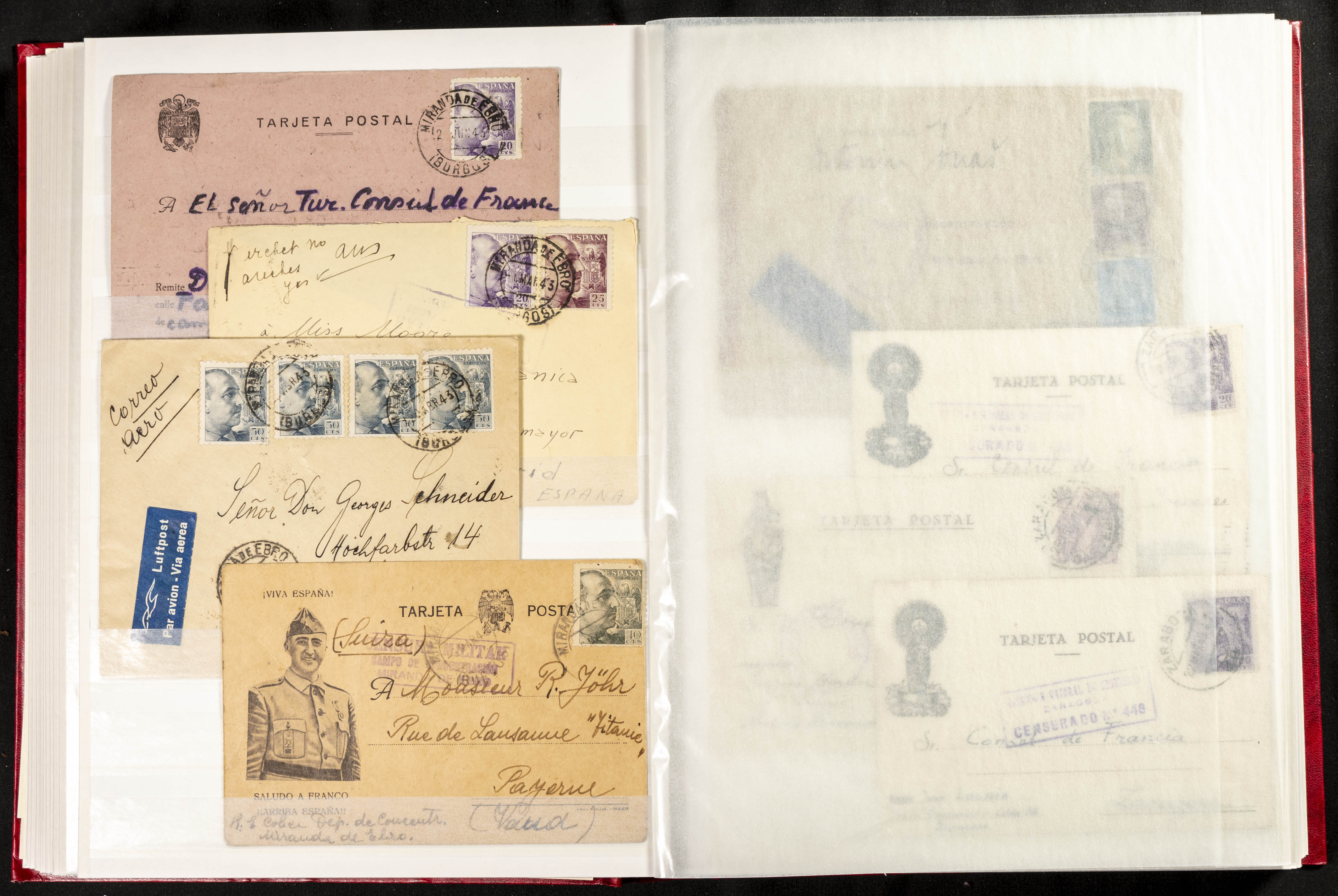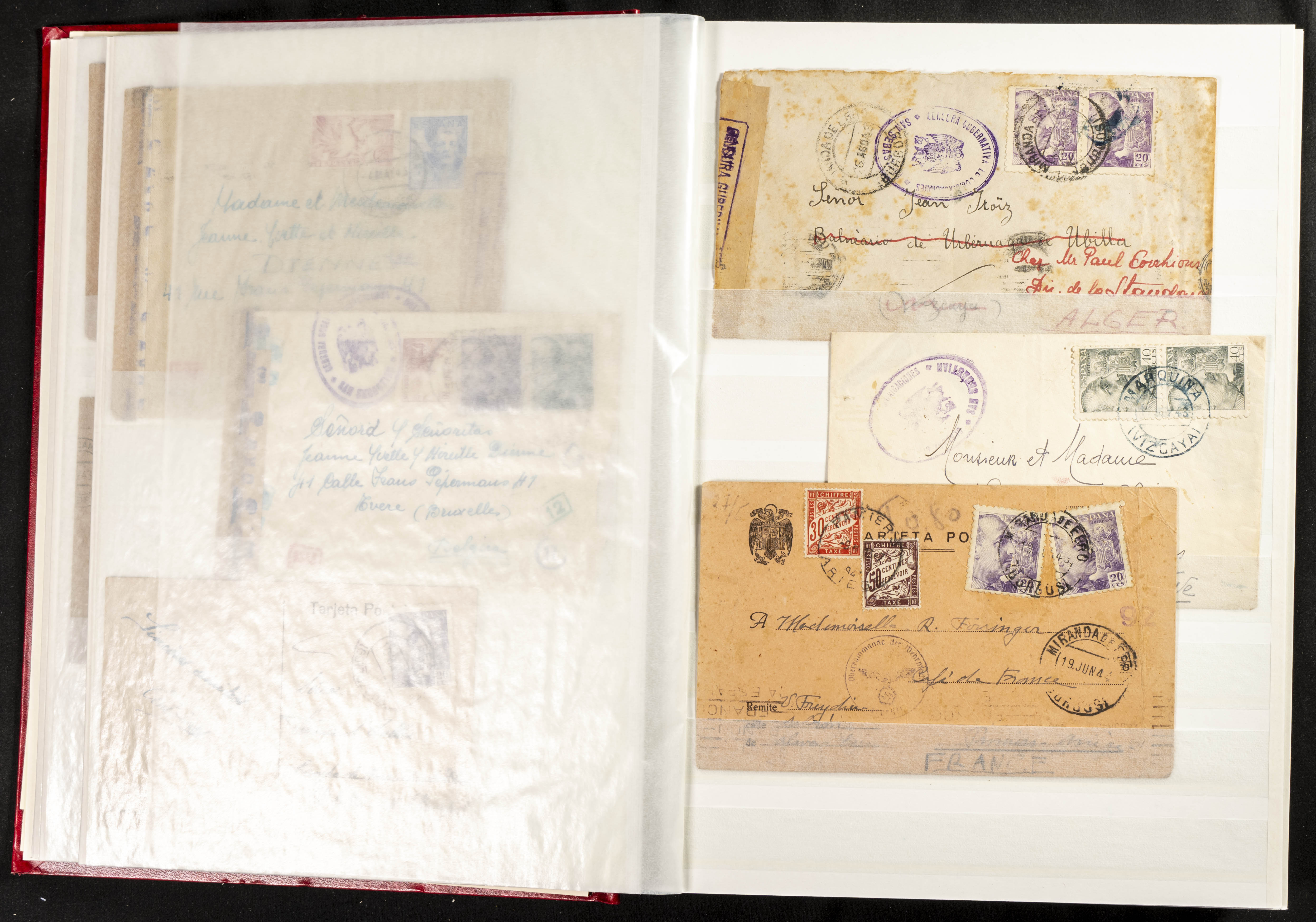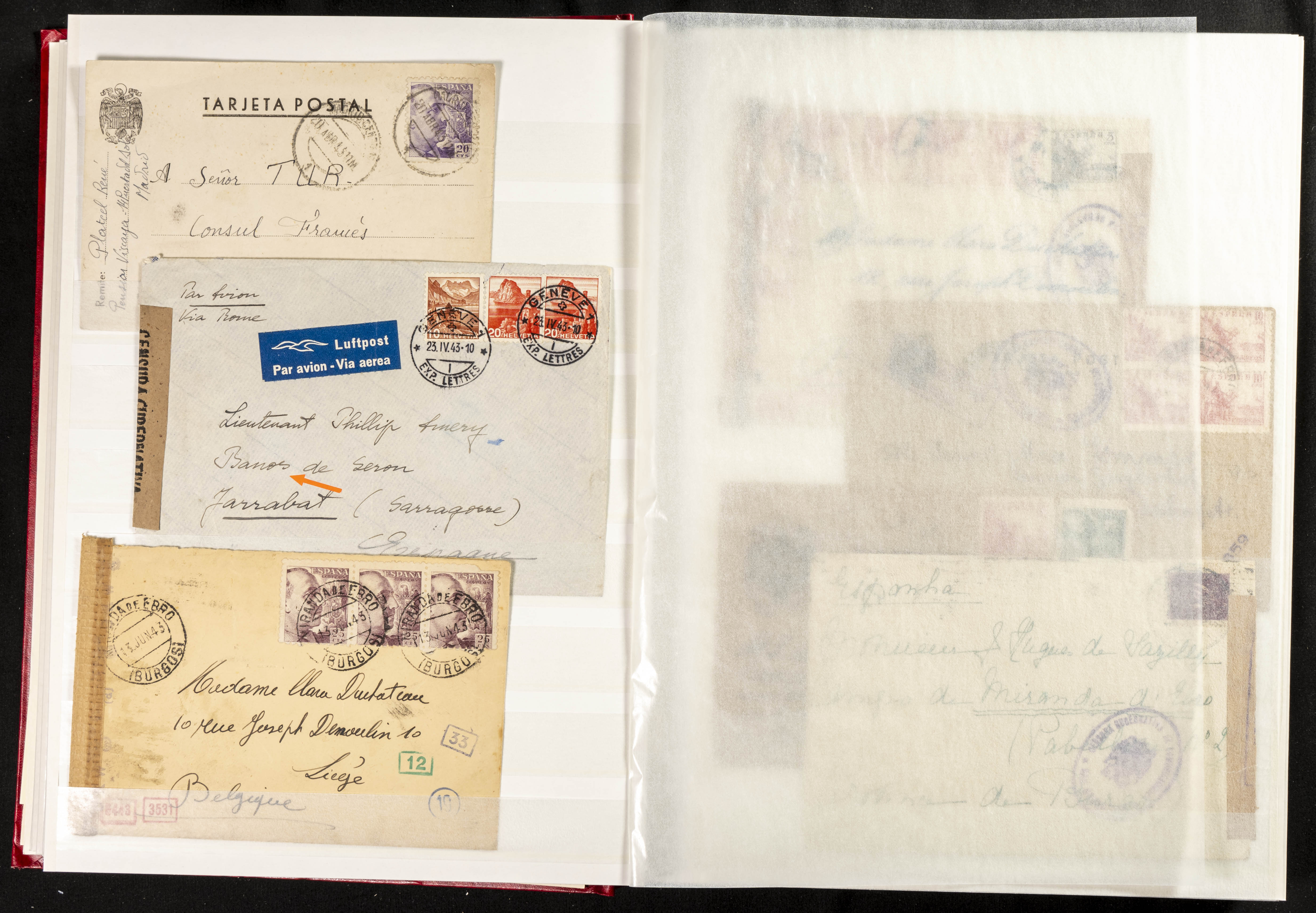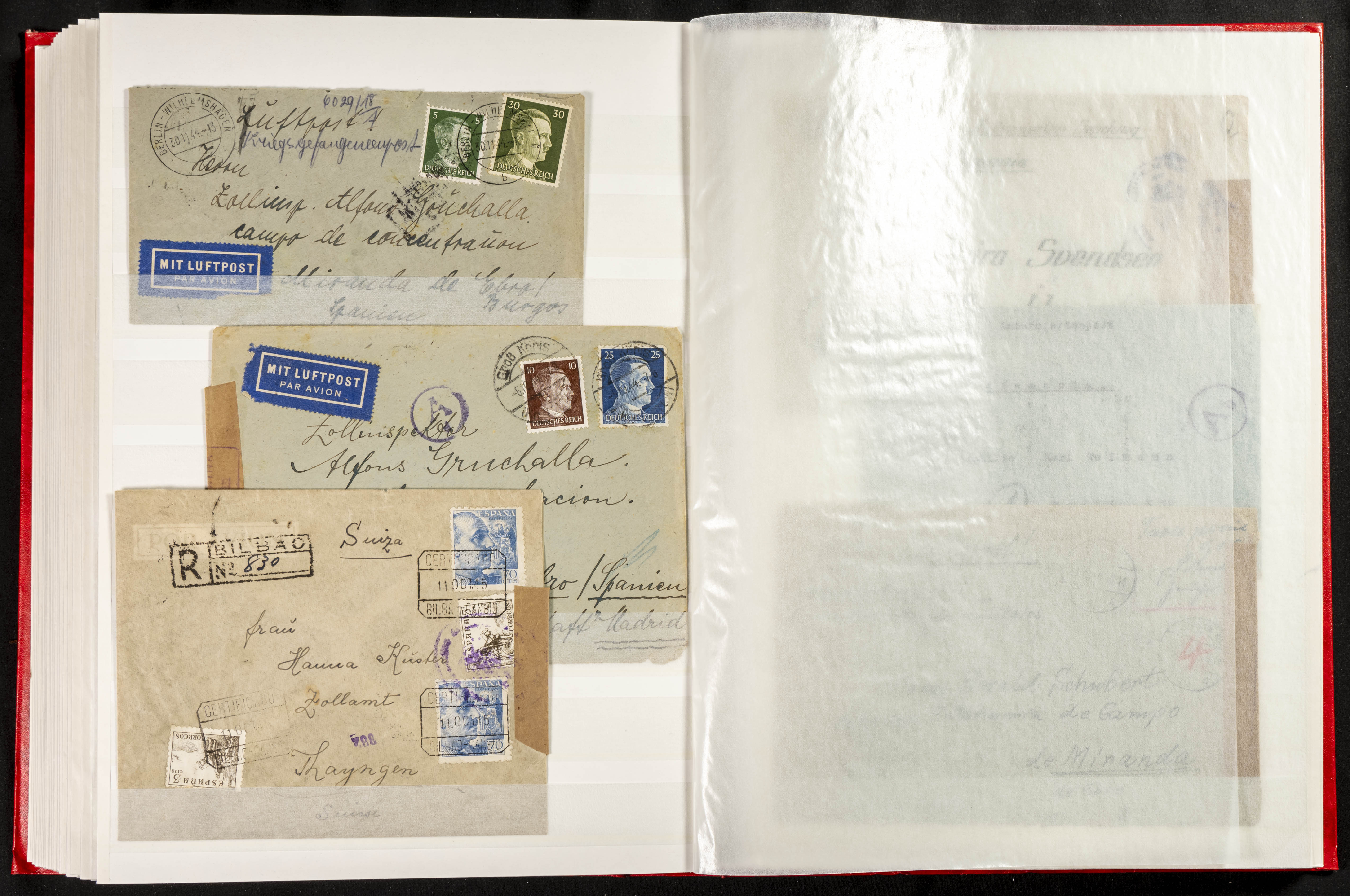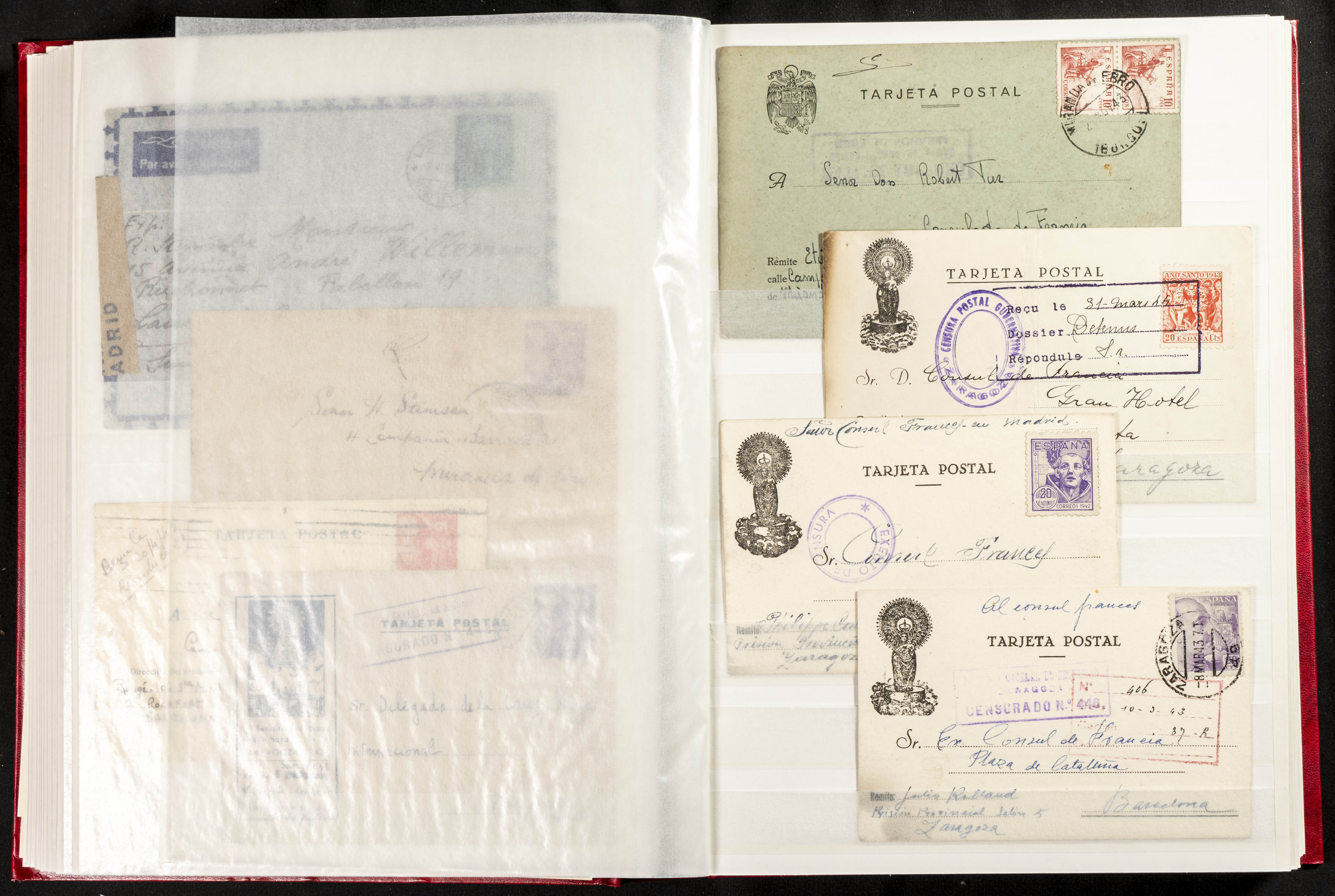 (1937ca). Espectacular colección sobre el Campo de Miranda de Ebro reunida por Estanislao Pan de Alfaro, estudiando numerosa correspondencia generada en este Campo y otros repartidos por España y Europa, incluye más de cuatrocientas cartas, tarjetas, entero postales, tarjetas entero postales, recibos, fotografías, etc, relacionadas con este campo y su periodo de funcionamiento que comienza durante la Guerra Civil y a partir de los años cuarenta sirve además como internado para extranjeros, conteniendo correspondencia de Legión Cóndor, Brigadas, Voluntarios Italianos y correspondencia extranjera, relacionada con campos de refugiados y de trabajadores extranjeros. IMPRESCINDIBLE EXAMINAR.