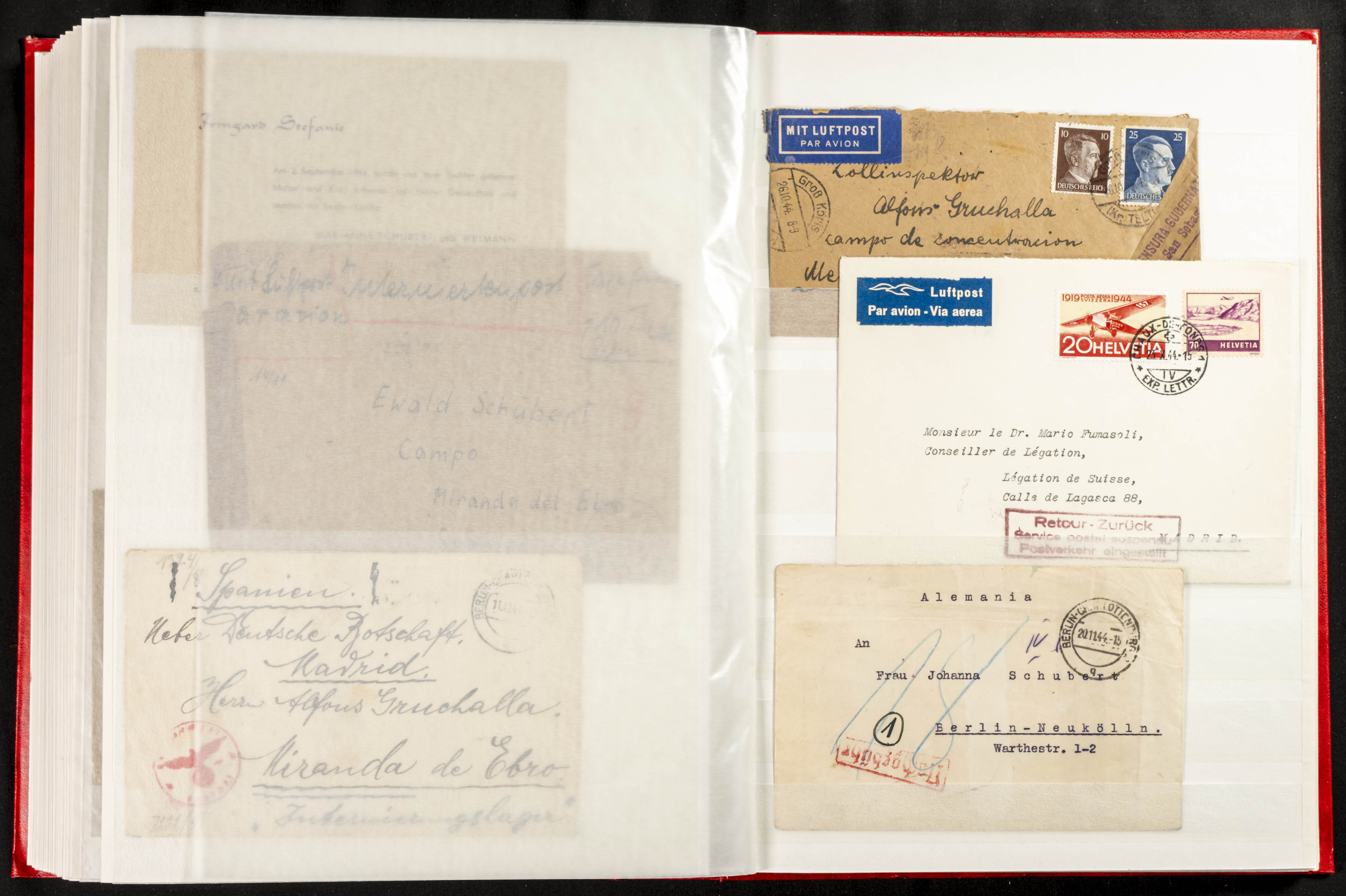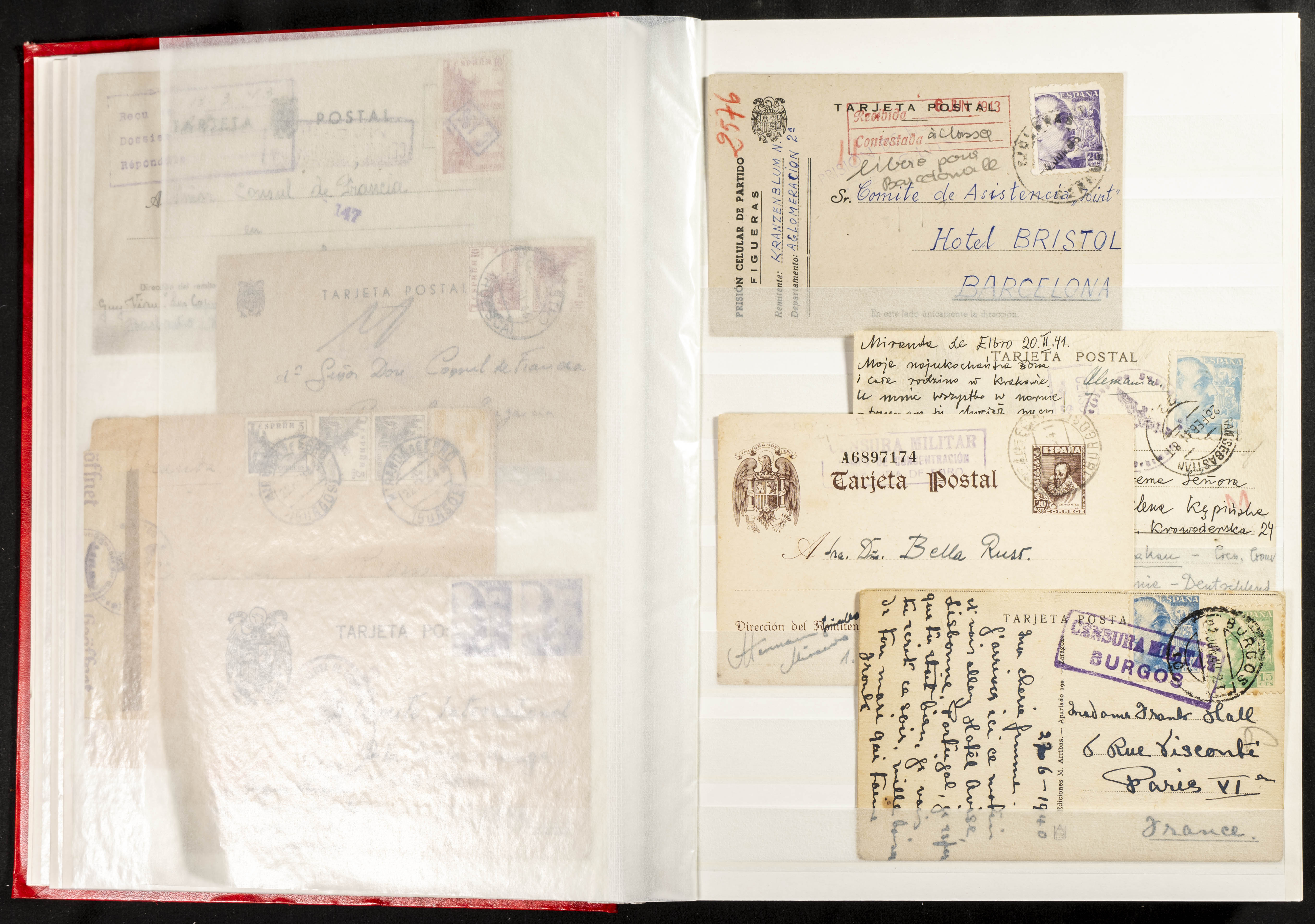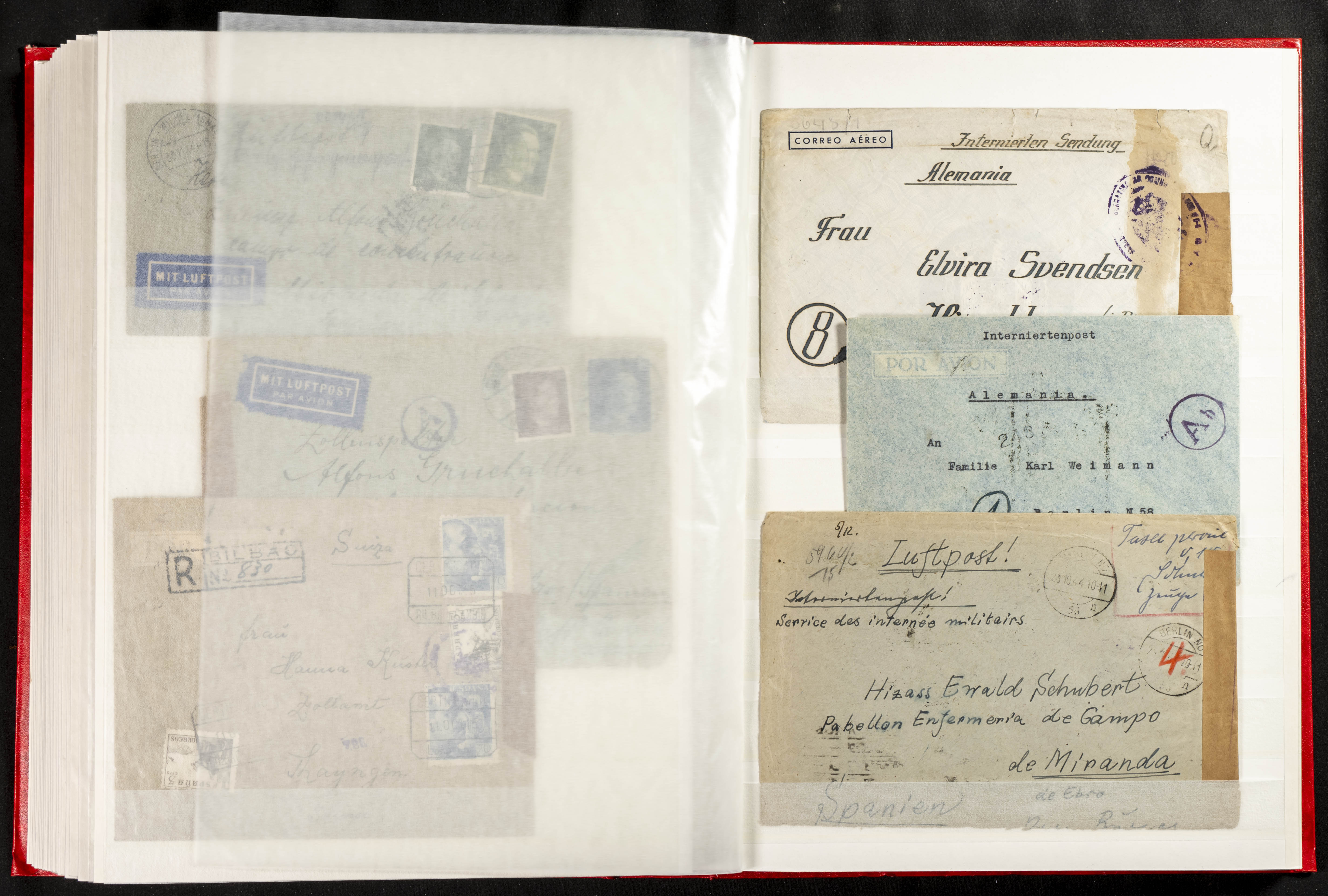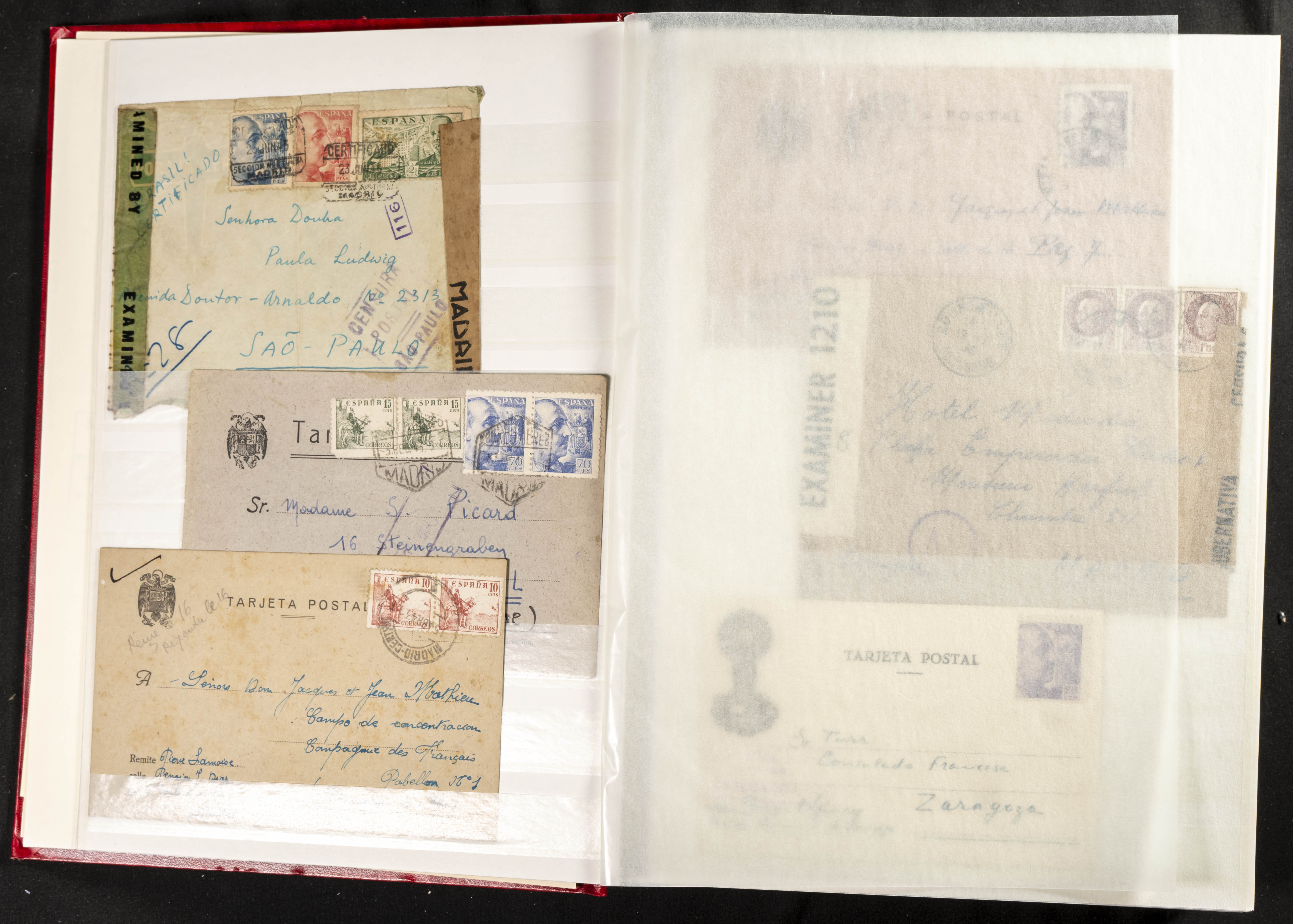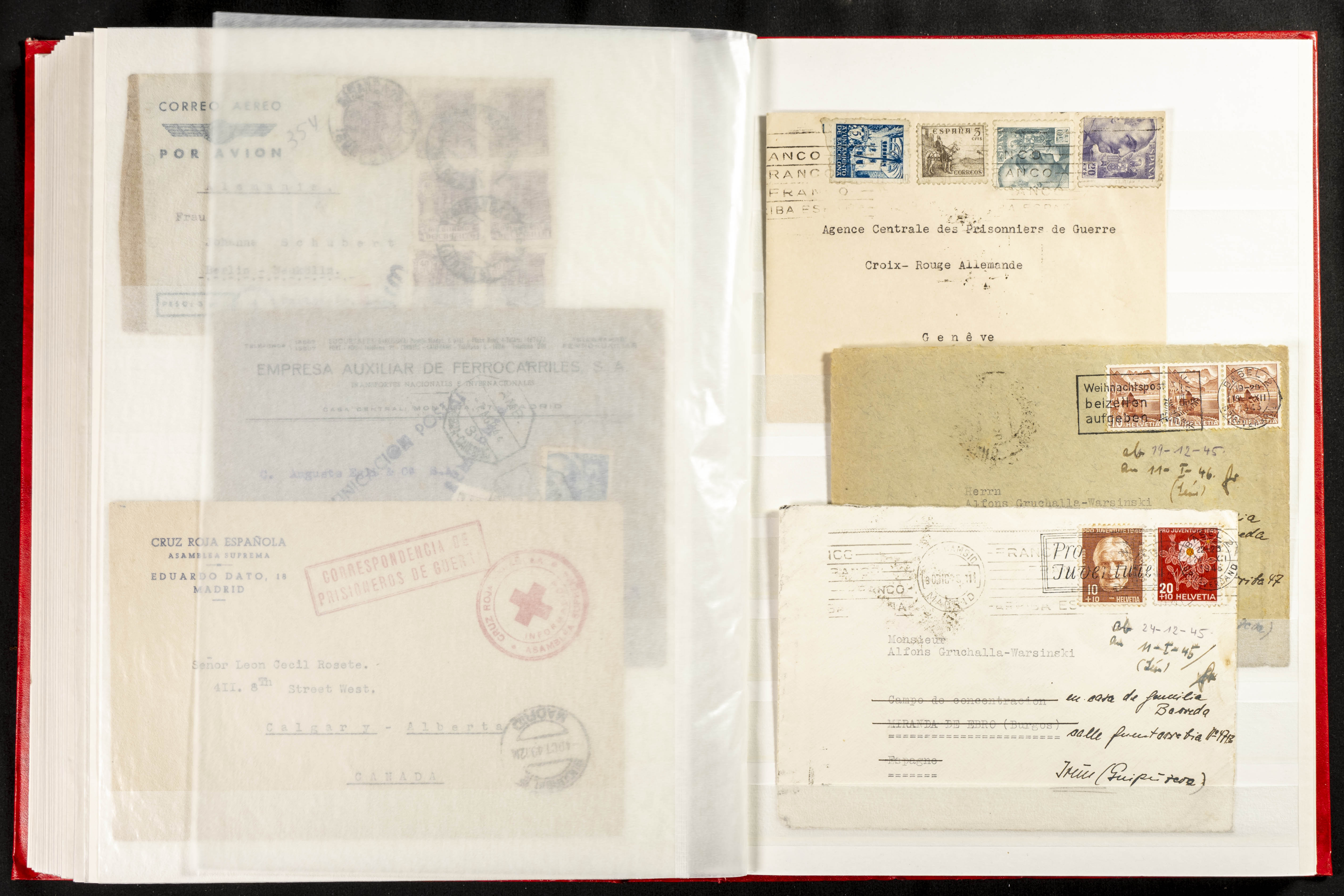 (1937ca). Espectacular colección sobre el Campo de Miranda de Ebro reunida por Estanislao Pan de Alfaro, estudiando numerosa correspondencia generada en este Campo y otros repartidos por España y Europa, incluye más de cuatrocientas cartas, tarjetas, entero postales, tarjetas entero postales, recibos, fotografías, etc, relacionadas con este campo y su periodo de funcionamiento que comienza durante la Guerra Civil y a partir de los años cuarenta sirve además como internado para extranjeros, conteniendo correspondencia de Legión Cóndor, Brigadas, Voluntarios Italianos y correspondencia extranjera, relacionada con campos de refugiados y de trabajadores extranjeros. IMPRESCINDIBLE EXAMINAR.