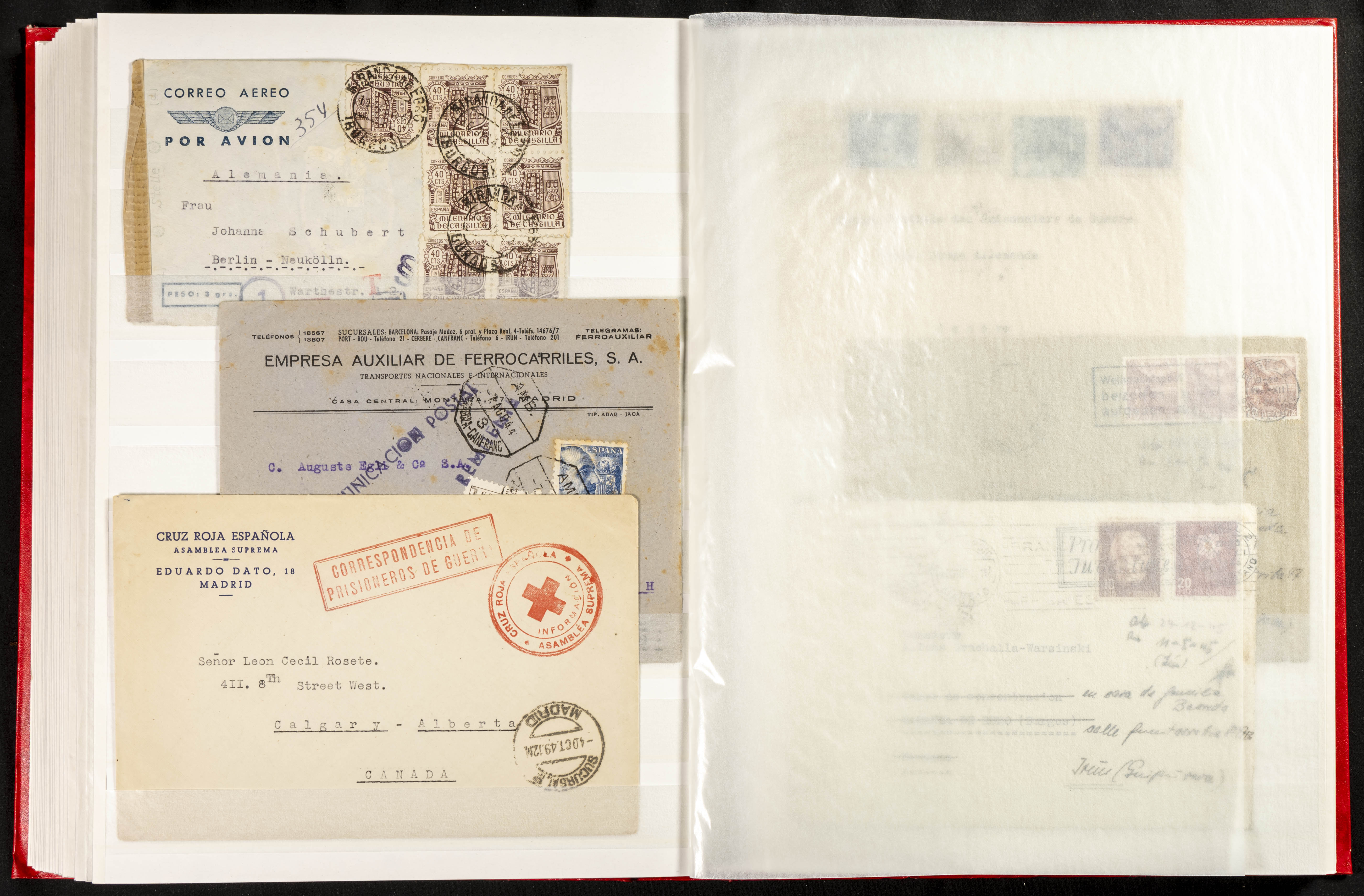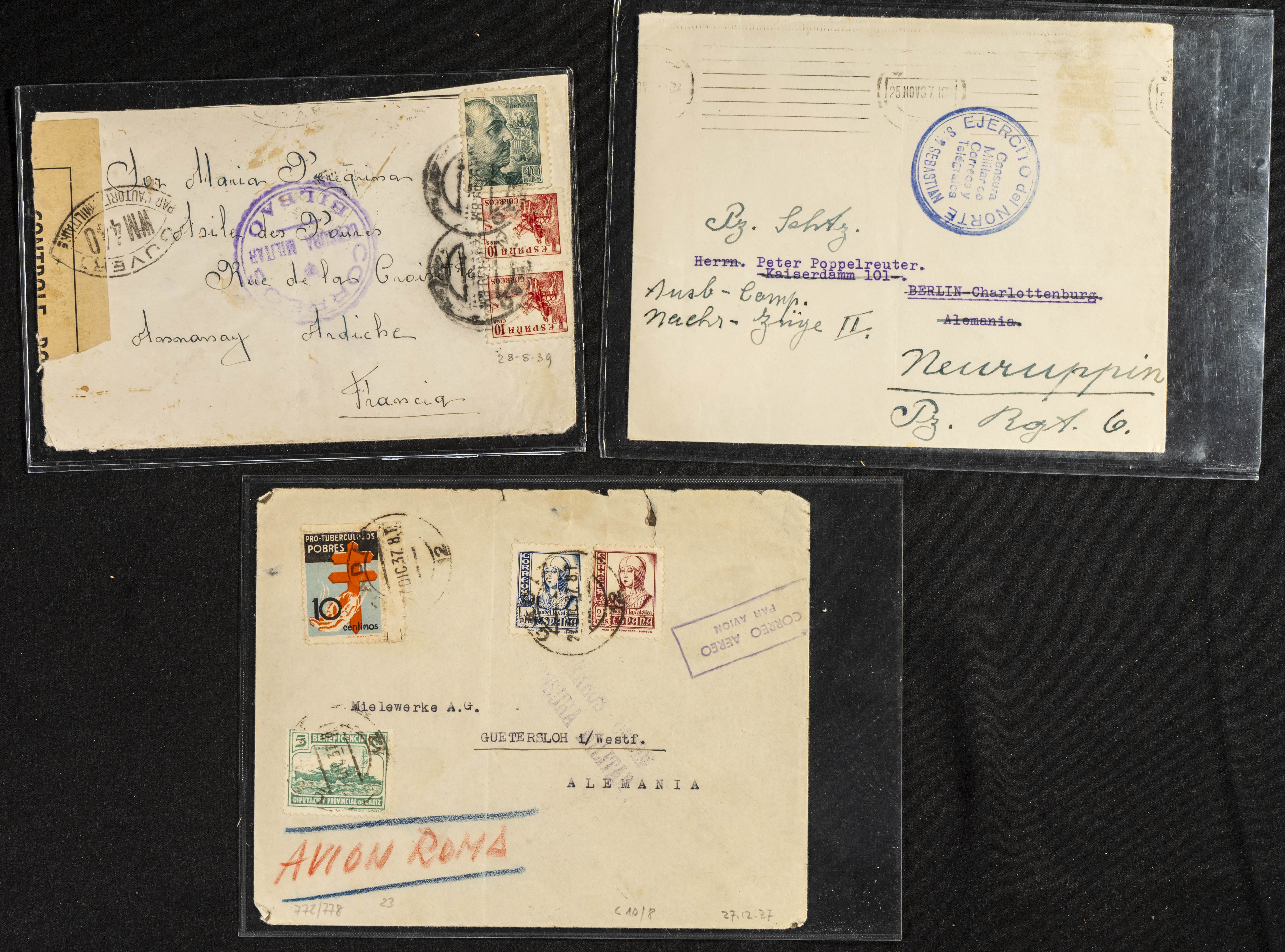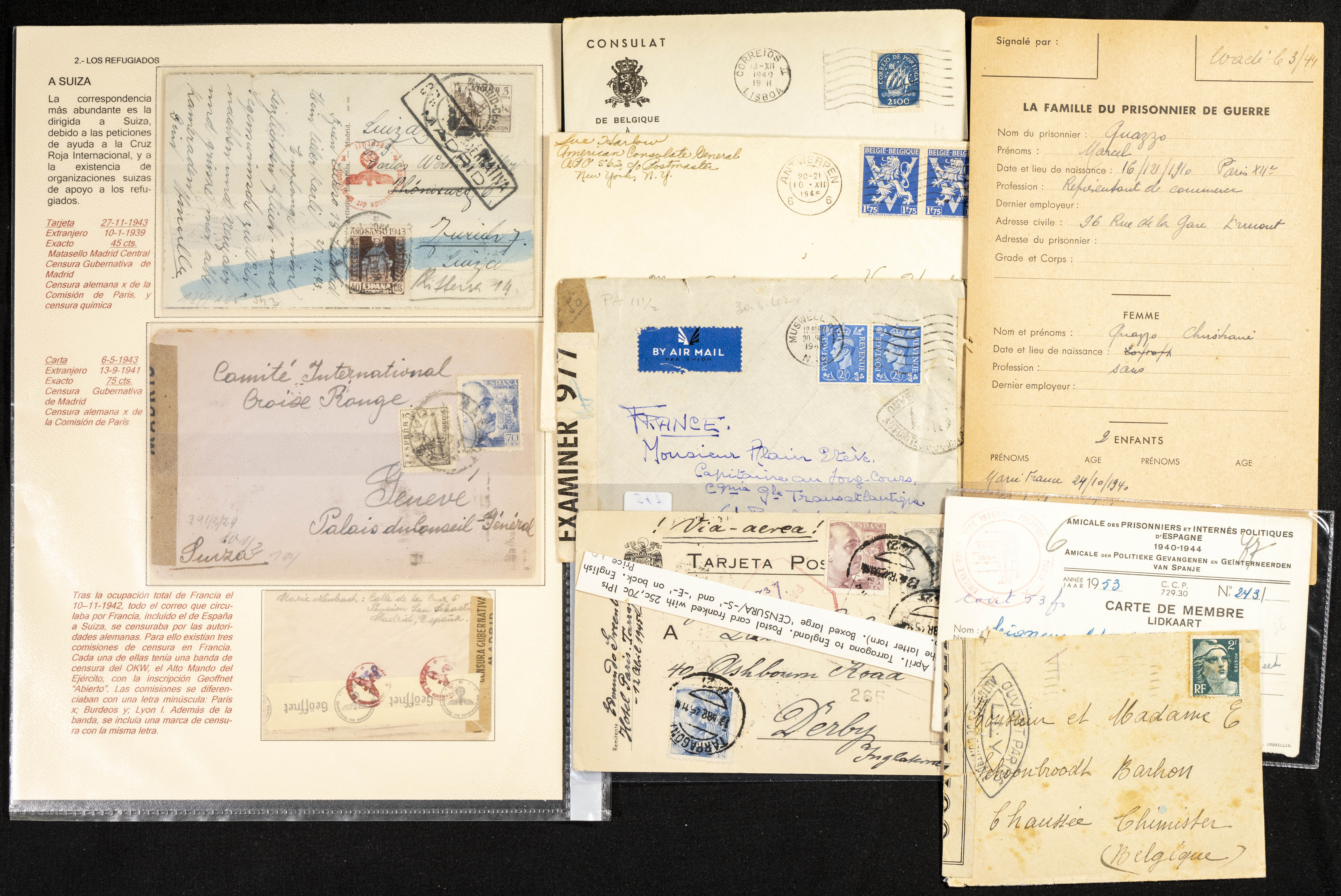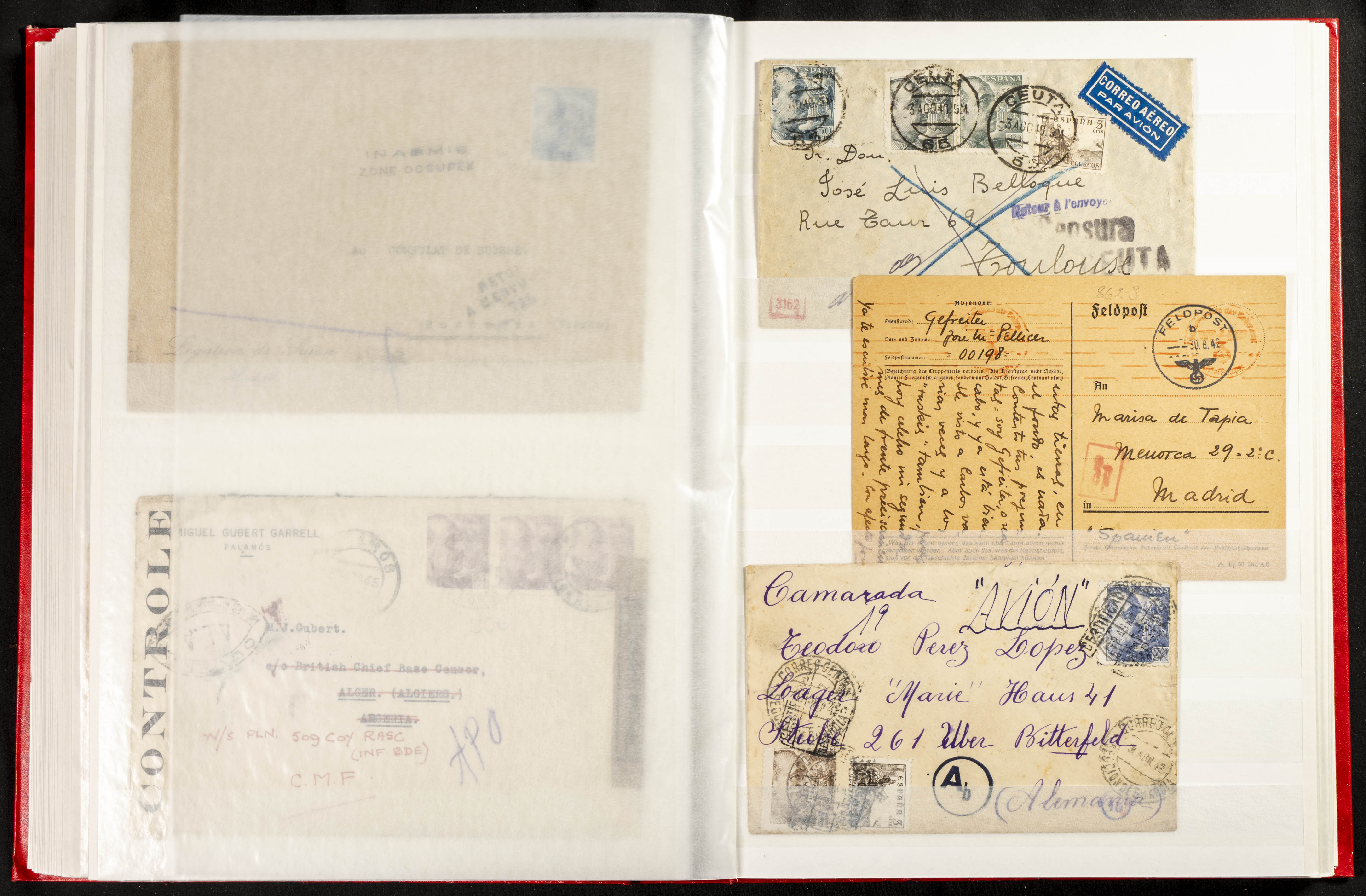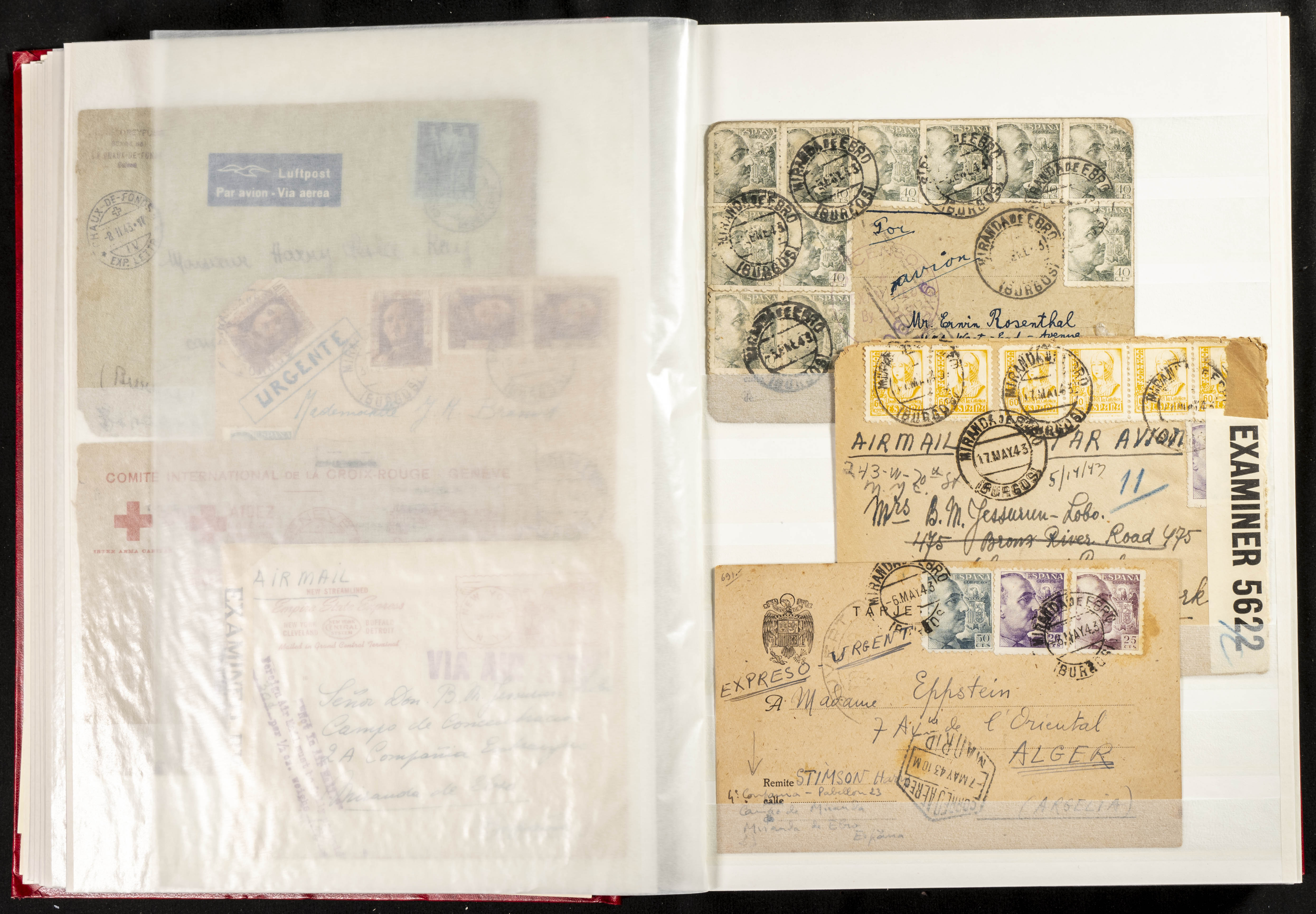(1937ca). Espectacular colección sobre el Campo de Miranda de Ebro reunida por Estanislao Pan de Alfaro, estudiando numerosa correspondencia generada en este Campo y otros repartidos por España y Europa, incluye más de cuatrocientas cartas, tarjetas, entero postales, tarjetas entero postales, recibos, fotografías, etc, relacionadas con este campo y su periodo de funcionamiento que comienza durante la Guerra Civil y a partir de los años cuarenta sirve además como internado para extranjeros, conteniendo correspondencia de Legión Cóndor, Brigadas, Voluntarios Italianos y correspondencia extranjera, relacionada con campos de refugiados y de trabajadores extranjeros. IMPRESCINDIBLE EXAMINAR.
